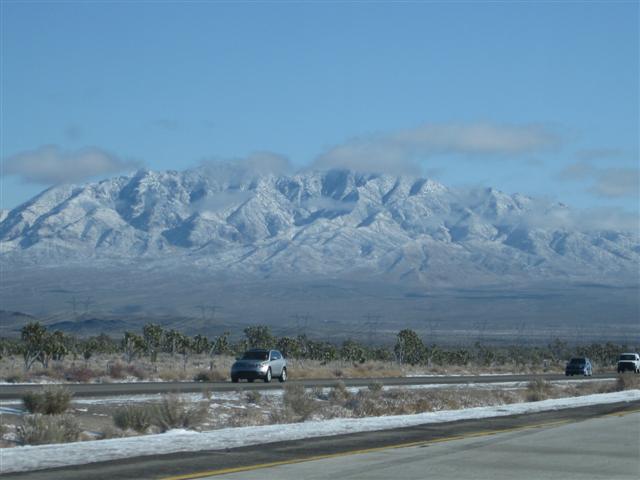 We started our trip at 5:30am, got some coffee (our new addiction) and headed out on the road to Sin City. We always forget that Los Angeles still has a winter, and up in the mountains, they had a decent amount of snow! Some people even pulled over so their kids could play in the snow!