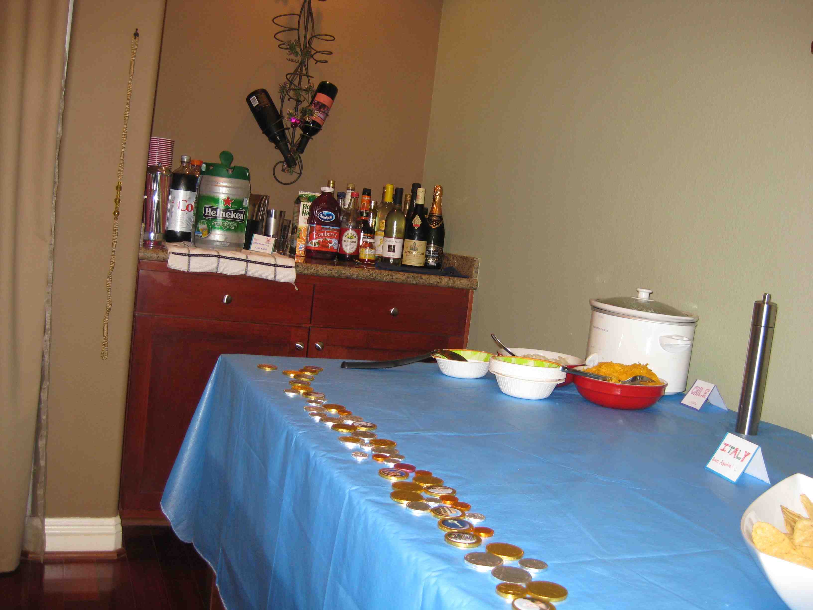 Last night we celebrated the Olympic Opening Ceremonies in style with an Olympic-themed party! We had a “cultural potluck” to celebrate all the countries! Everyone brought a dish from a different country and it was DELICIOUS! We have some talented chefs in our circle of friends, thanks guys! (More on the food later).