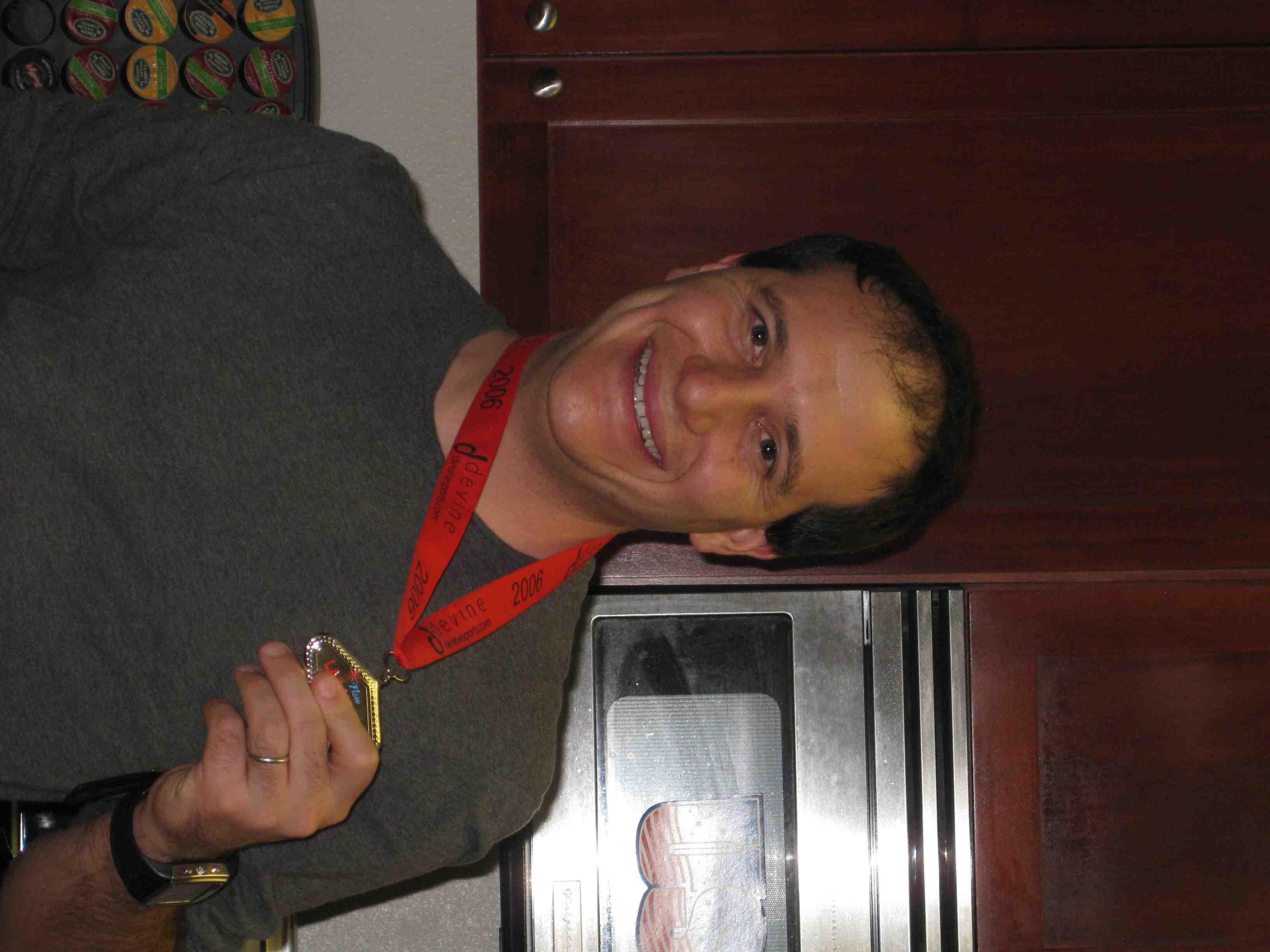 Irving and I got into the mood by wearing some of our “medals”!