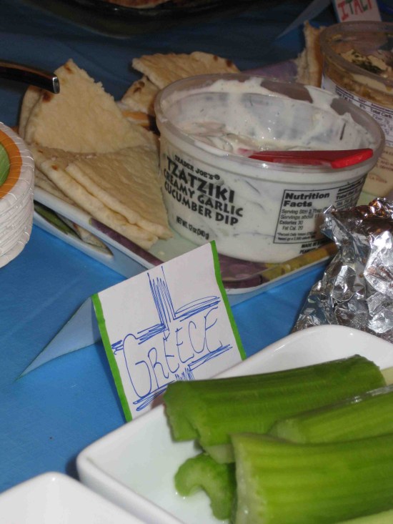 Hummus, Pita, Tzatziki, Olives = Greece