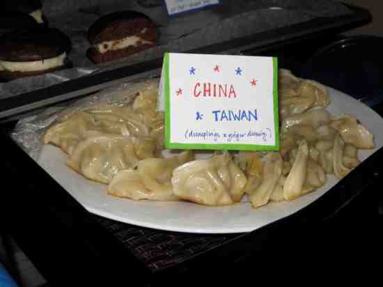 Like I was saying, we had some AMAZING food! Everyone had to make a name tag for the country of their dish. 🙂