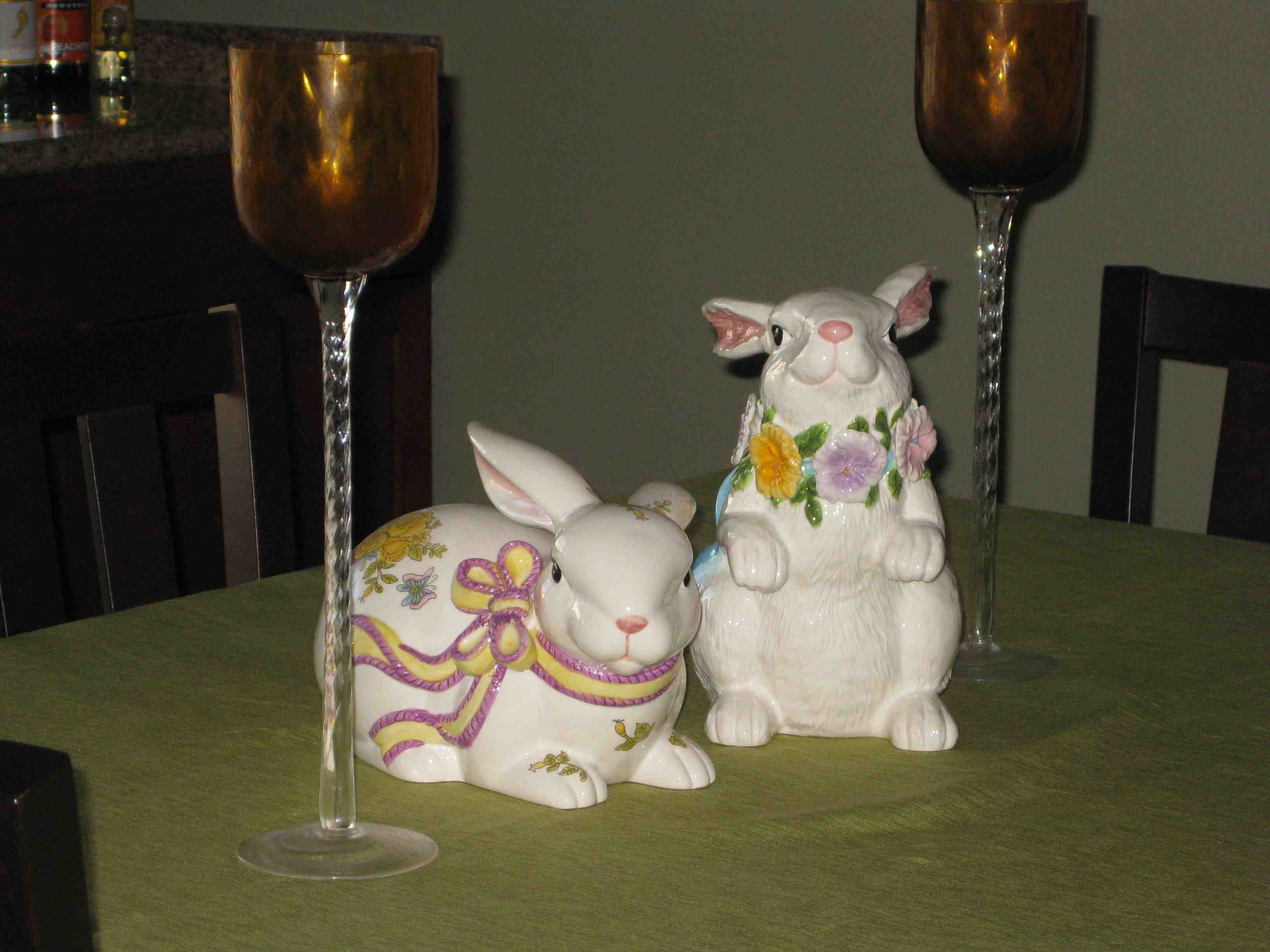 It has been so beautiful out lately (not to rub it in, all you east coasters!) that I got excited to decorate for Spring! My grandmother gave me these Lenox Rabbits when we got engaged and I get so excited to put them out every spring.