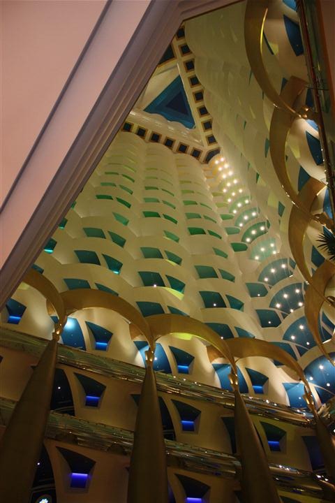 The interior really does have gold plated walls. It also has the world’s tallest atrium in the lobby. ![]()