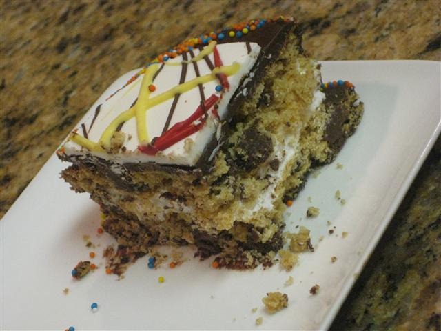 It was marshmallow sandwiched between two chocolate chunk cookies, dipped in chocolate, covered in sprinkles and topped with a layer of white chocolate. Got all that? ![]()