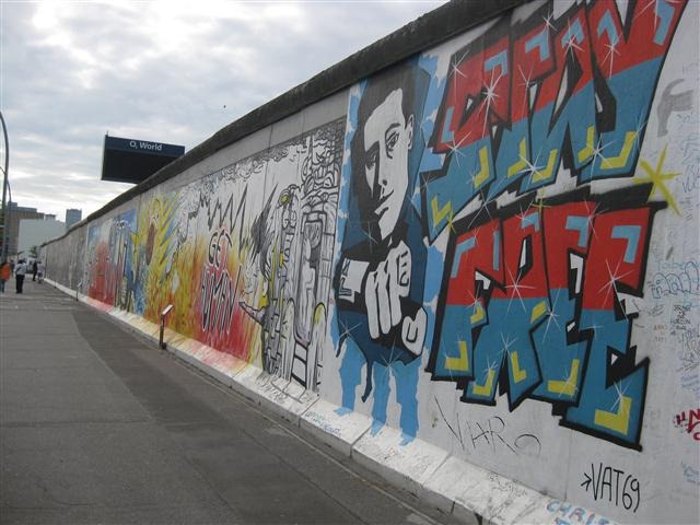 This is the longest section of intact wall and is entirely covered in commissioned art. The wall is notorious for graffiti, but this section was each done by an artist invited to paint one part each.