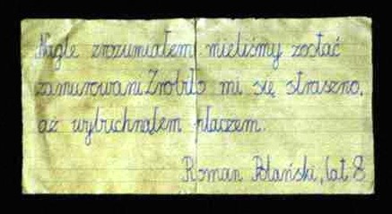 Translation: “I suddenly realized that we were to be walled in. I got so scared that I eventually burst into Tears” – Roman Polanski, Aged 8 ![]()