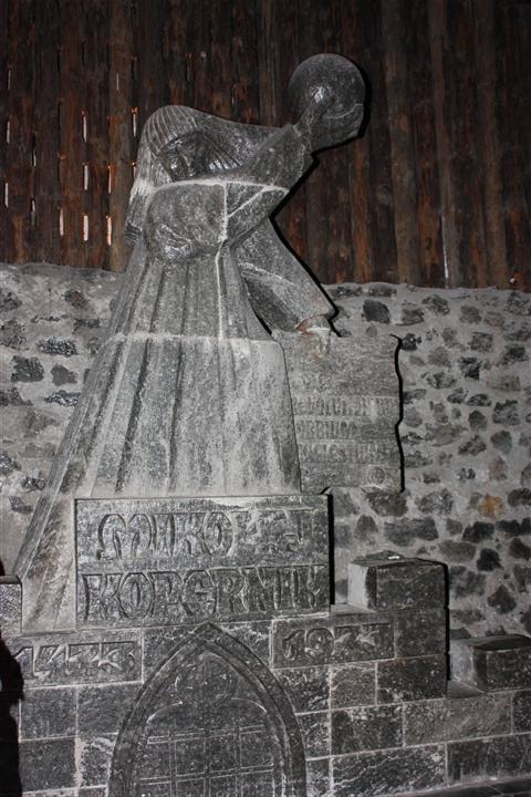 This entire room used to be salt that was mined and hauled away. Now it’s a cavernous space with carved salt murals, statues and art work. Supposedly, the chandeliers are solid crystal from a nearby mine.