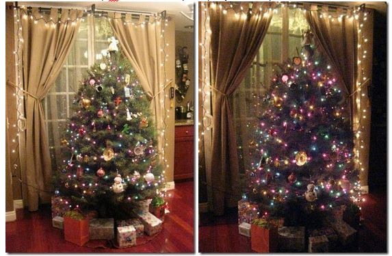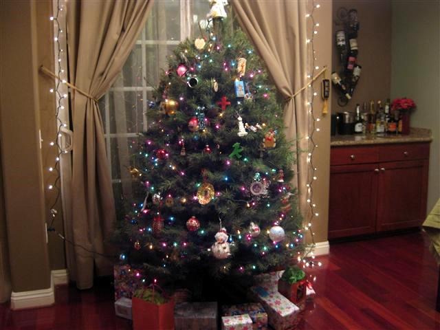 So I hear that Christmas is a mere two days away! Perhaps you’d like to see pictures of my tree! It’s another Home Depot Special, but it’s actually gorgeous and fits our space perfectly. I have to say I’m in love with it this year. ![]()