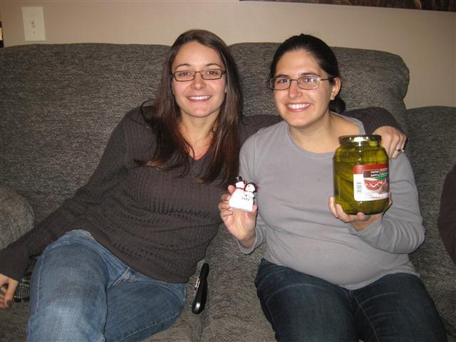 My oldest friend Linsay came over before I left. She knows me so well and came armed with a jar of pickles and gifts for the baby.