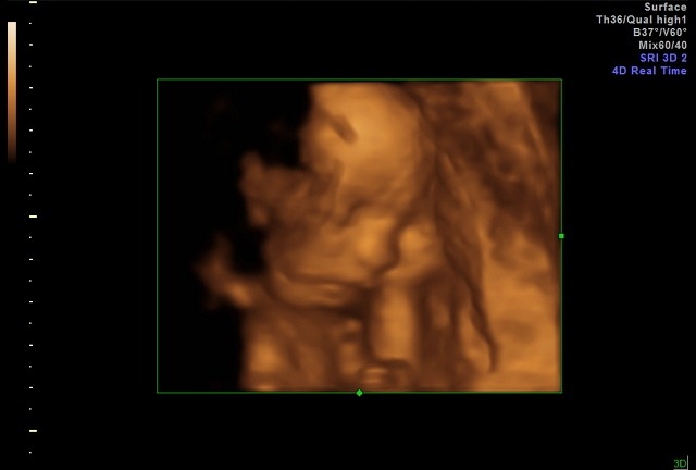 Check out this 4D picture we got this week too! The baby has its cute little hand up next to its cheek!! Aweee!!! ![]()