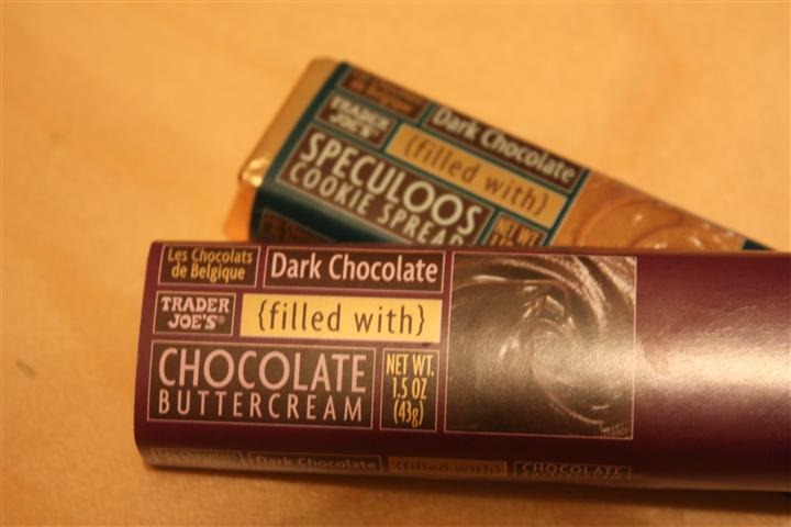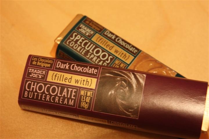 Chocolate with Cookie Spread? Chocolate with Chocolate Buttercream?! Are. You. Kidding? I spotted these on Erica’s blog today and knew I had to have them. I could barely get home before I tore them both open and had a square of each. They were pretty awesome.