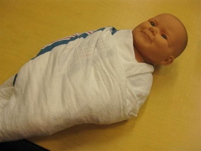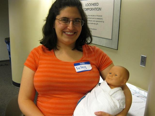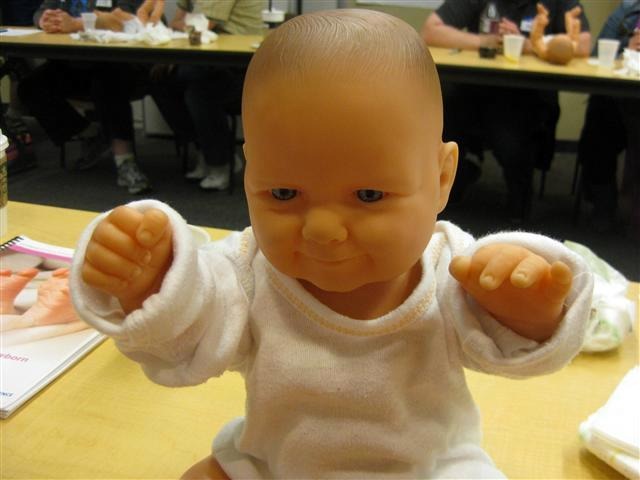 The class was divided into bite-sized sections and it flowed nicely from one to the other. The first thing we learned was how to hold a baby… and then how to safely pass a baby off to someone else. Make sure to support that little neck!![]()