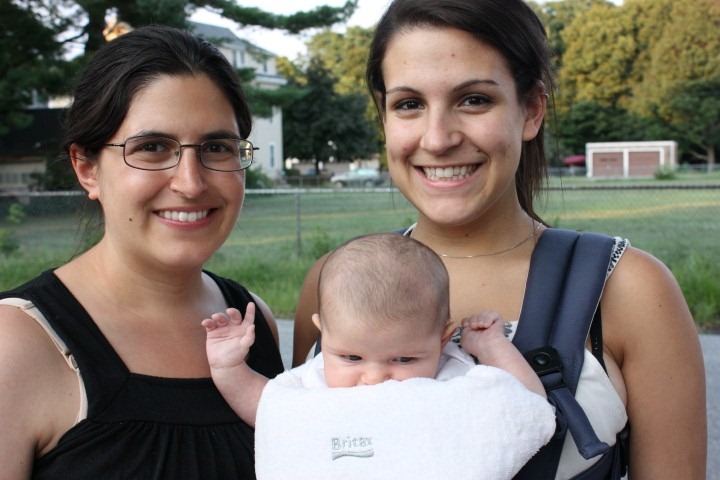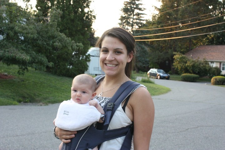 After this meal, the kids went out on a walk together. We strapped Adele onto Laurie and headed out. ![]()