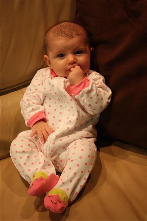 Now that Adele isn’t swaddled at all anymore, she is loving cozy footie pajamas!! There really isn’t anything cuter!