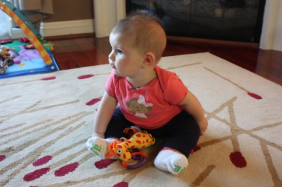 Look who’s sitting up! She teeters a little bit, but she can sit and play without any help!! I’m a proud mama!