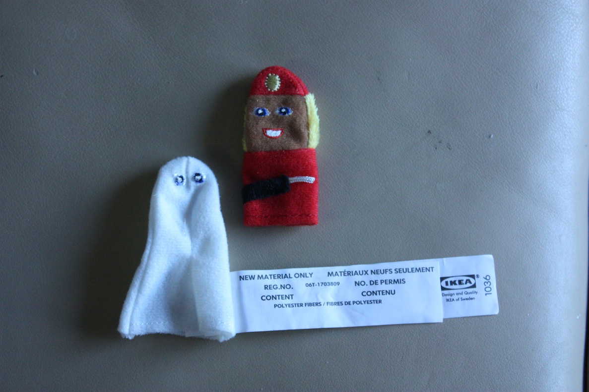 But seriously… why is the tag on the ghost so big? It’s twice the size of the puppet itself!
