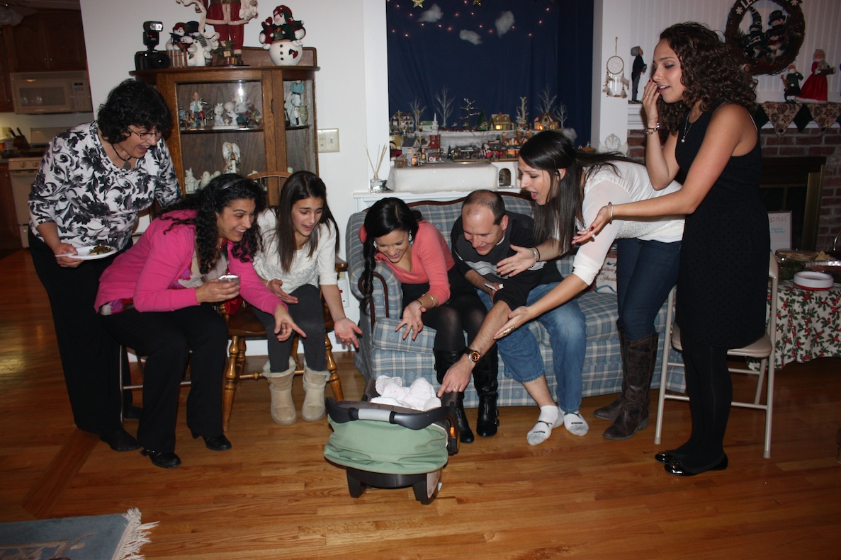 When we arrived, Adele was fast asleep in her carseat, despite the hoards of people waiting to kiss her. She didn’t quite know what to do in her jacket, mittens and hat. She’s not used to this cold weather!