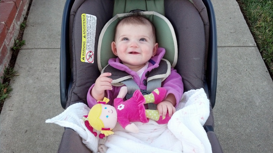 One day last week, I picked Adele up a little early from Daycare. Since it was still light out, instead of putting her in the car and driving home, I strapped her into the stroller and we set out on a walk in that neighborhood. She seemed pretty excited to see me so early, and I was so happy to get a few extra minutes of quality time with her.