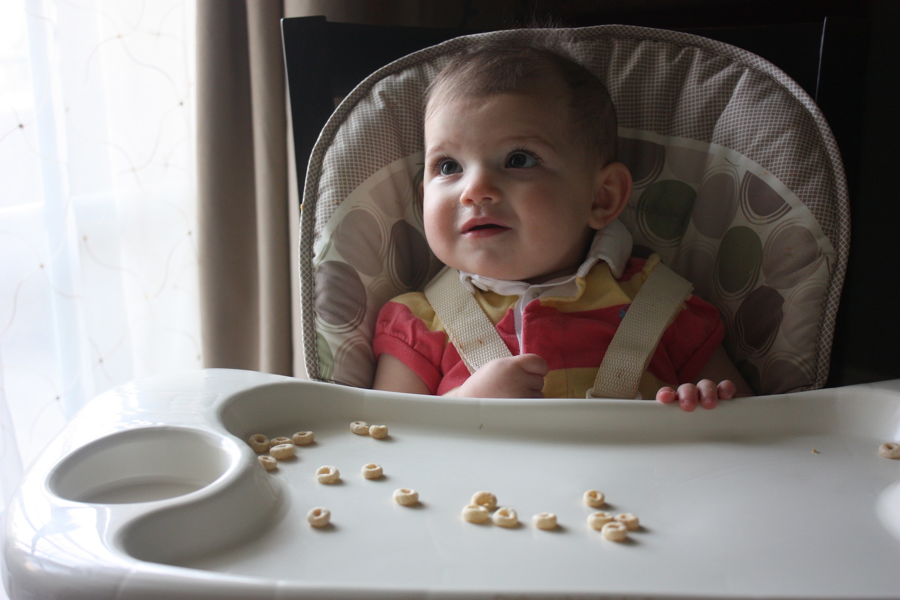 Lucas loves cheerios too!!! I’m convinced he only likes them because they are the perfect size for their pincher grasps. I’ve become one of those moms with a bag of cheerios in all my bags. hahaha