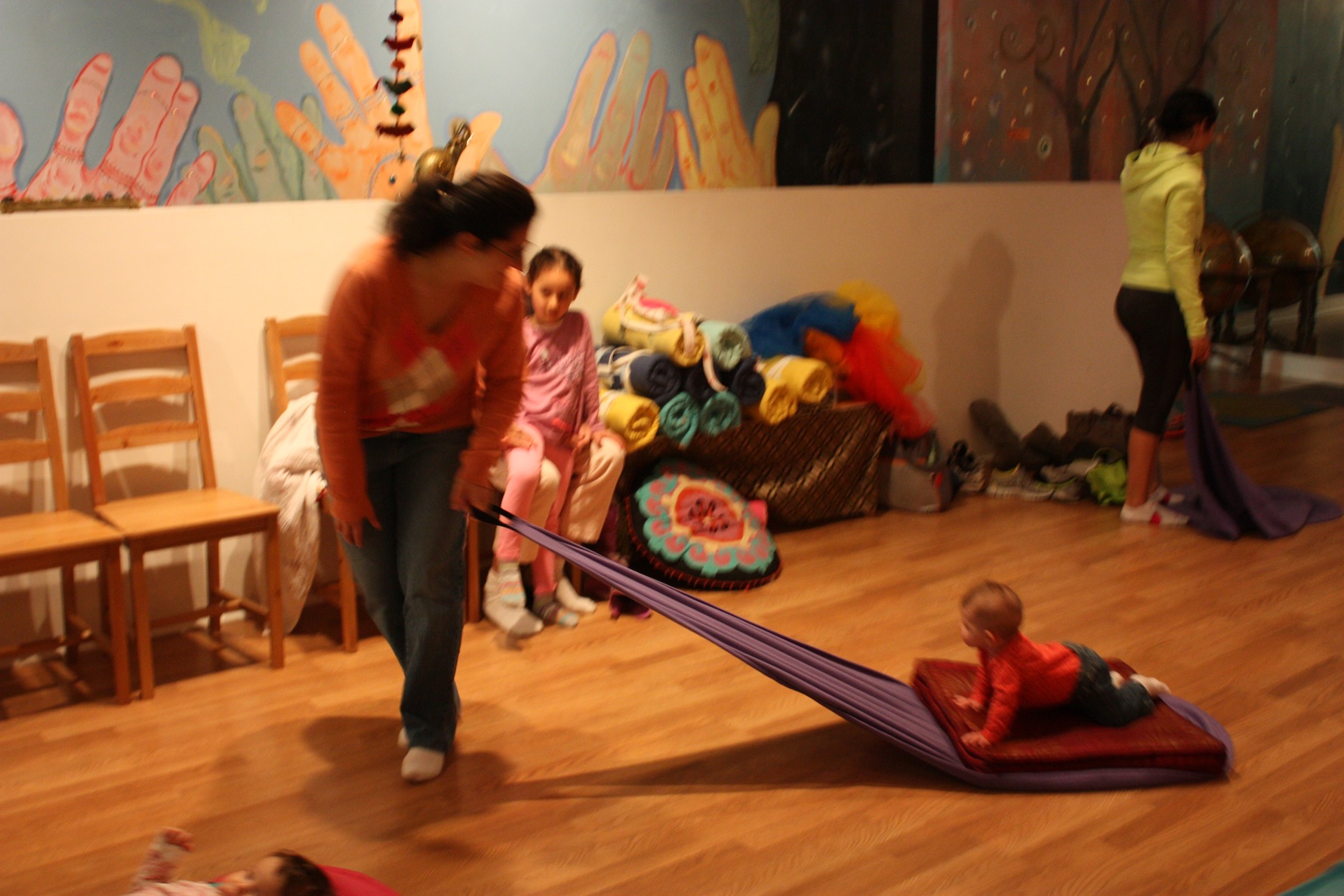 We started the class by singing songs and doing motions with our hands. But instead of typical baby songs, we sang new songs… in Spanish! It was very fun.