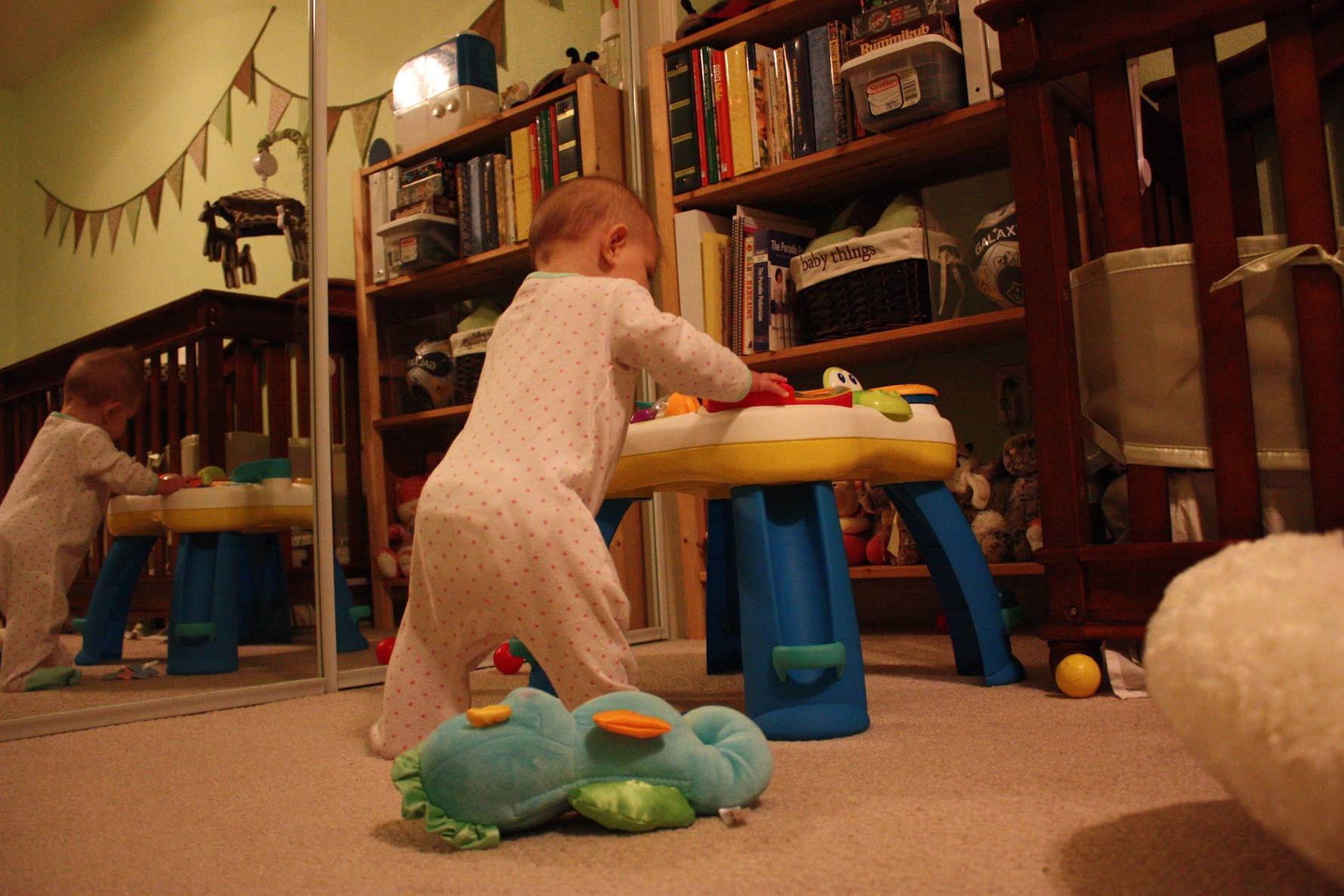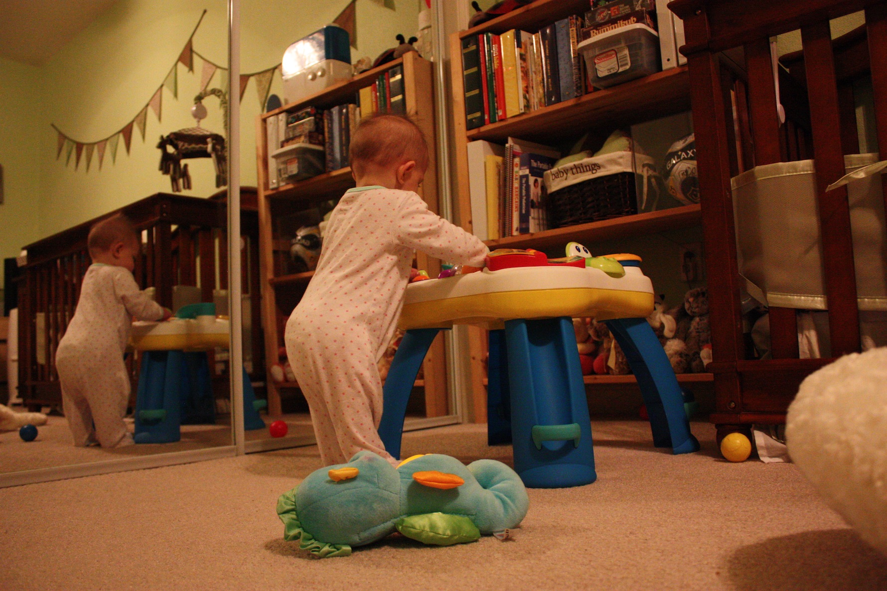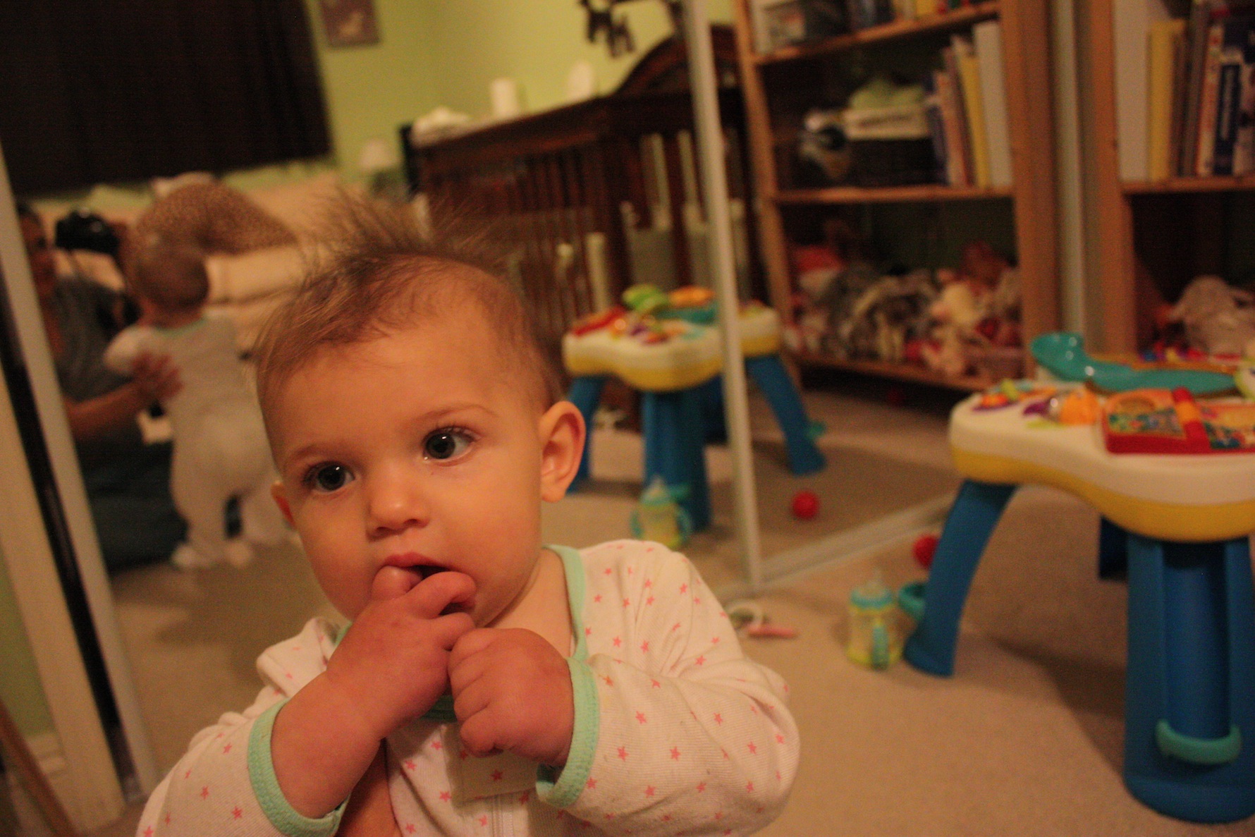 Oh, and when you’re cutting two new teeth, let’s just add another milestone that same day too while we’re at it! Look who was caught standing in her crib after a 2 hour nap!