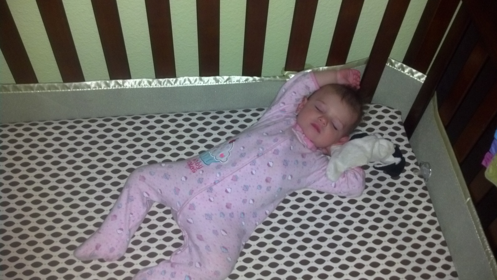 She still prefers to sleep on her tummy, but occasionally, we catch her being sassy with her arms behind her head. haha