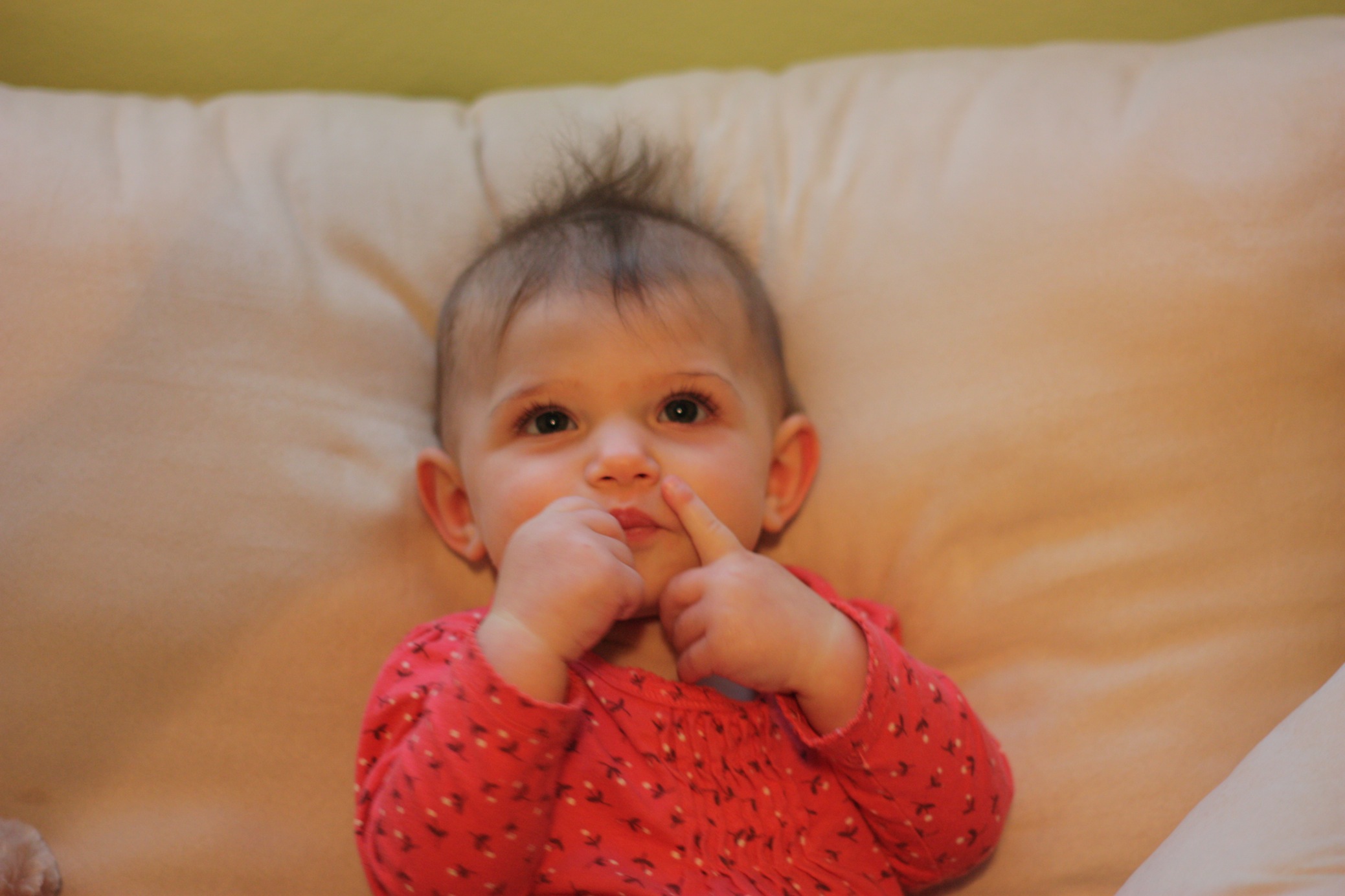 -Clapping! If you start singing “Patty Cake” she’ll clap her hands! She also claps when you ask her to sometimes. And she claps when she hears music.