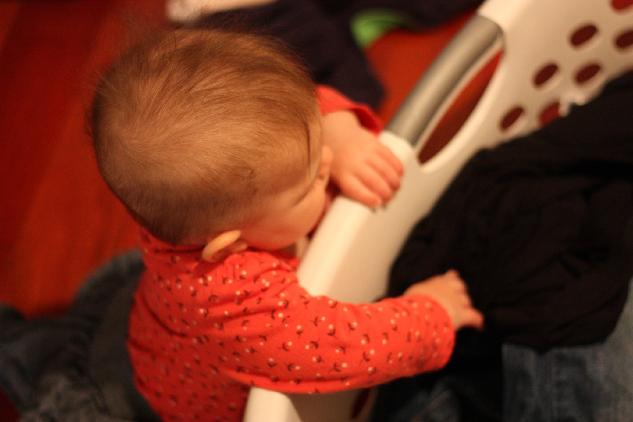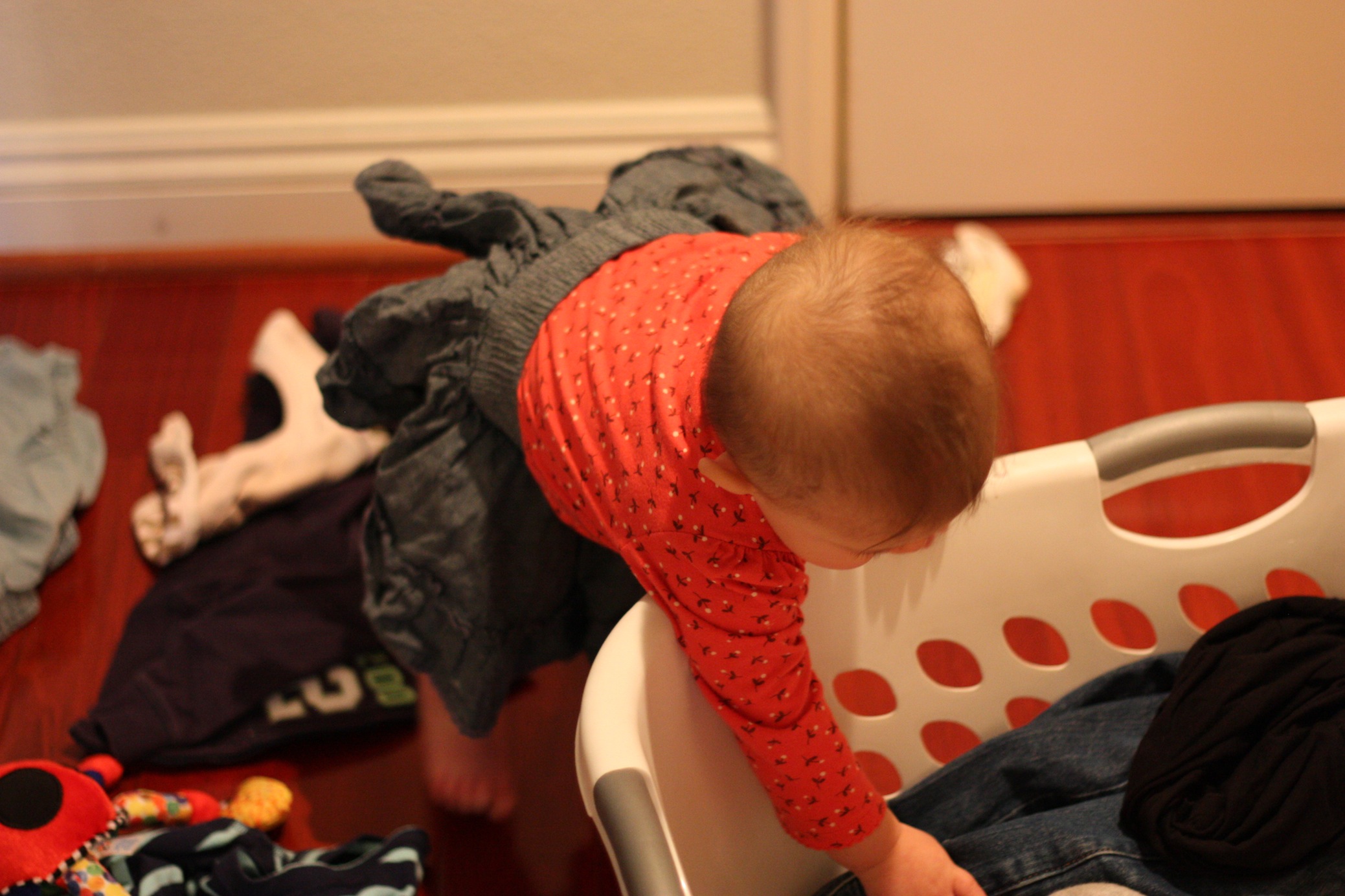 -Her newest obsession is throwing laundry out of the laundry basket. Very helpful.