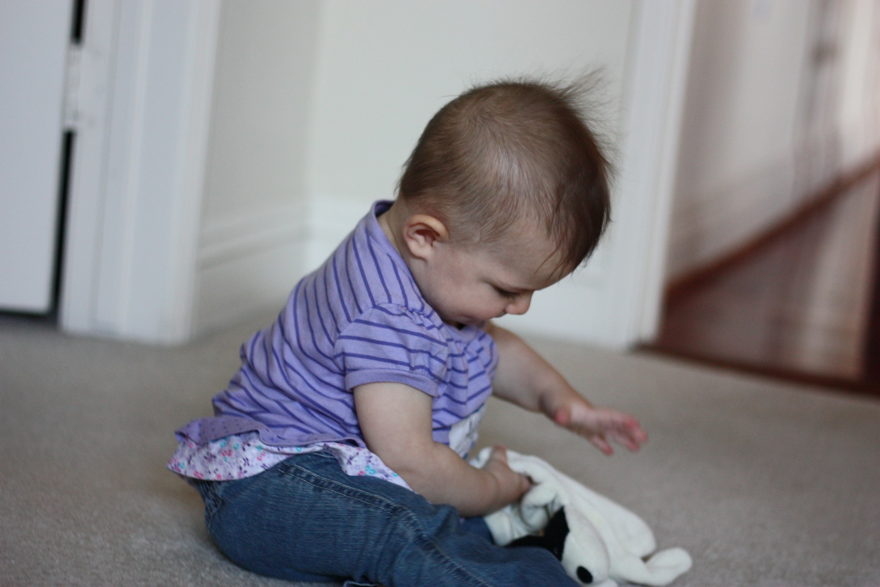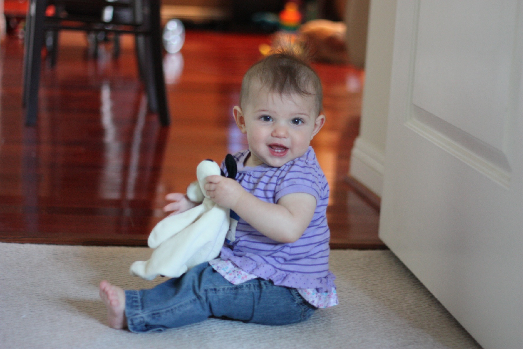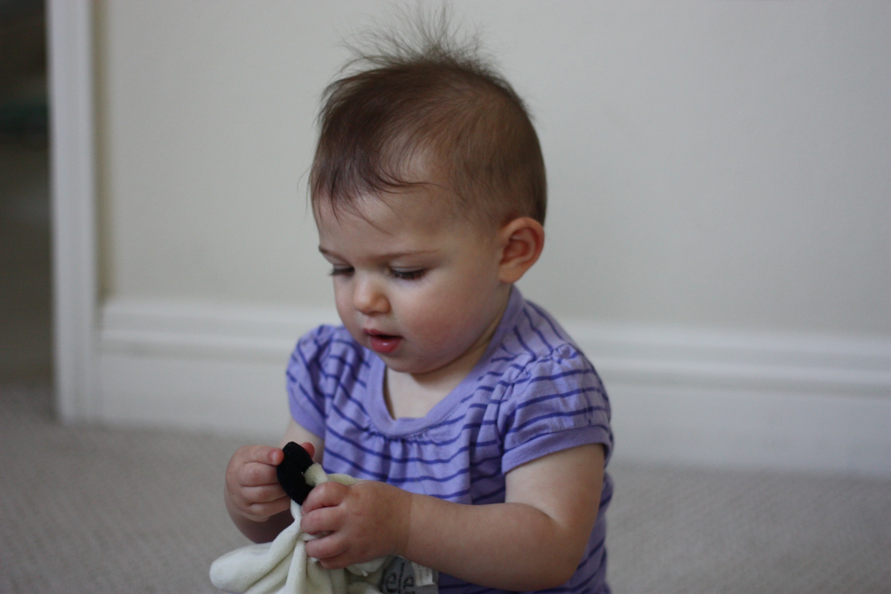 Adele has been sleeping with the same little puppy since she was four months old. She LOVES it. When it’s time for bed, she takes the puppy and rubs it on her cheek or puts it on her forehead and promptly falls asleep. I knew that a lovey can be a great sleep association, but I had no idea how much she’d truly grow to love Mr. Puppy.