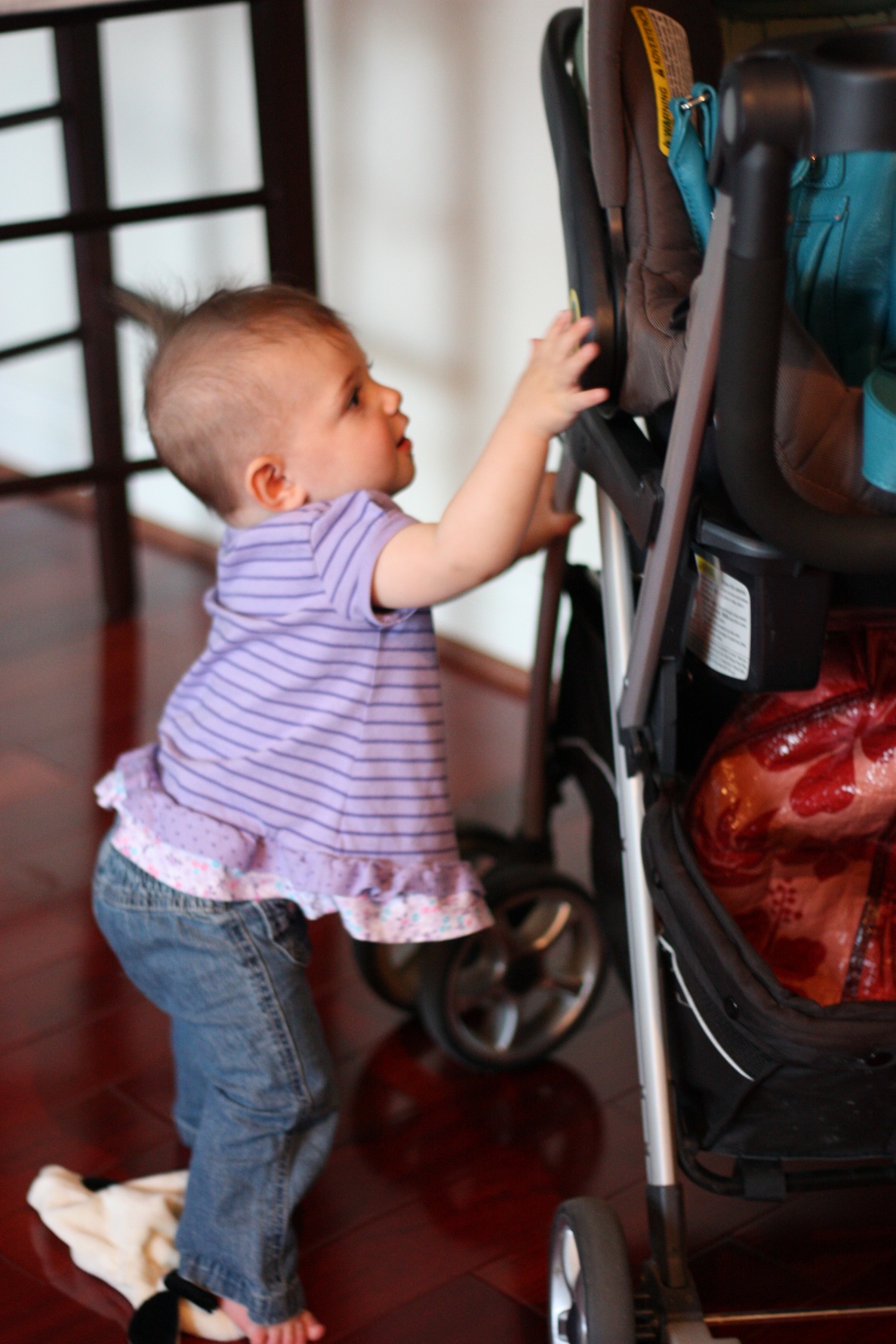 She still LOVES books. She loves looking at the pictures and pointing to things. She can point out the kitties, birdies and babies if you ask her to. She’s also obsessed with turning pages. In fact, she’s pretty enthralled with opening and closing anything really. She closes the box of wipes like it’s her job. She also loves to shut bedroom doors and dresser drawers….. and sometimes she shuts her fingers IN the drawers, which hasn’t been fun. Silly girl.