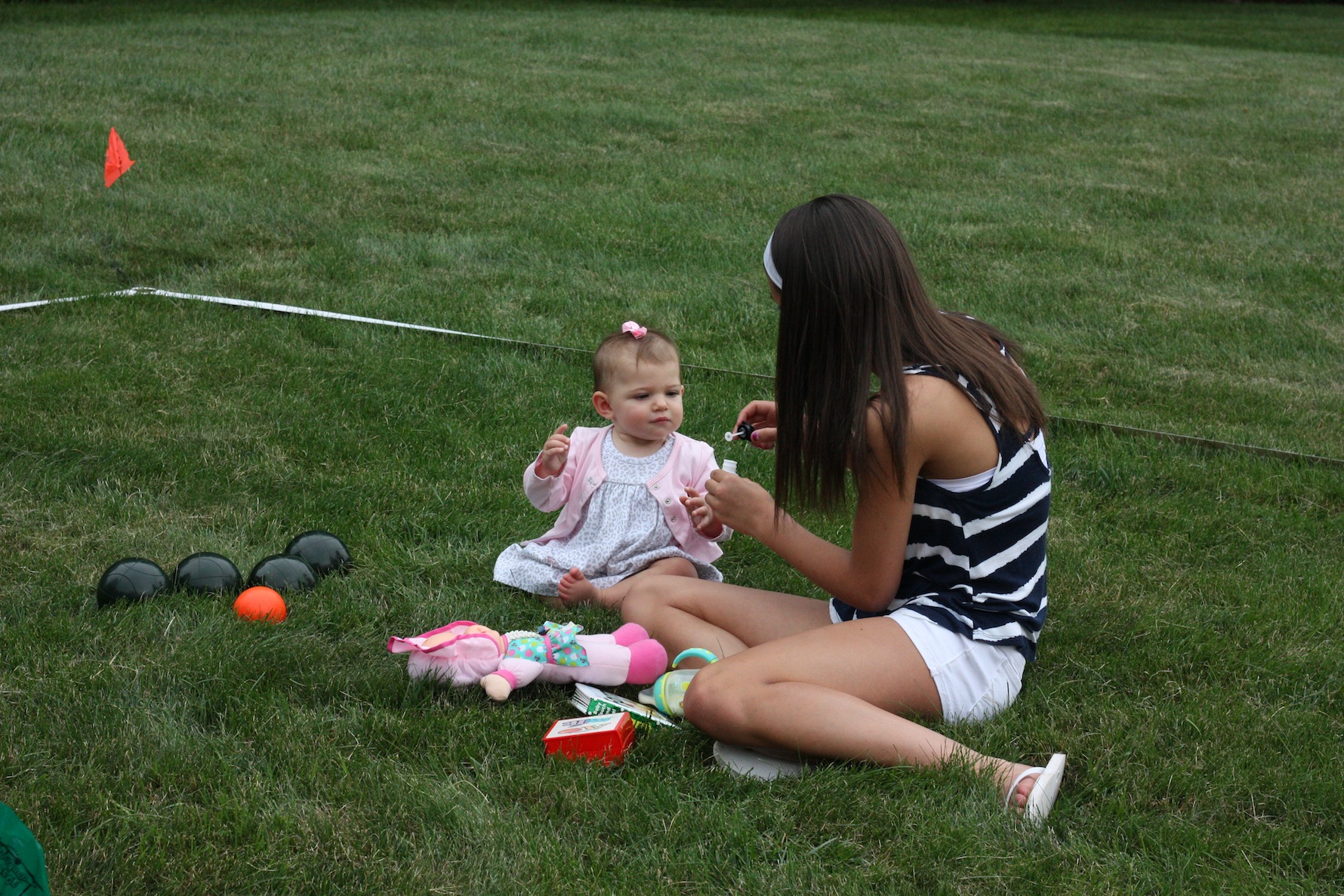 His party was so nice. SO proud of him! We had a beautiful afternoon and everyone enjoyed playing Bocce on the lawn (family tradition)….but the littlest guest had fun playing with bubbles on the court too!