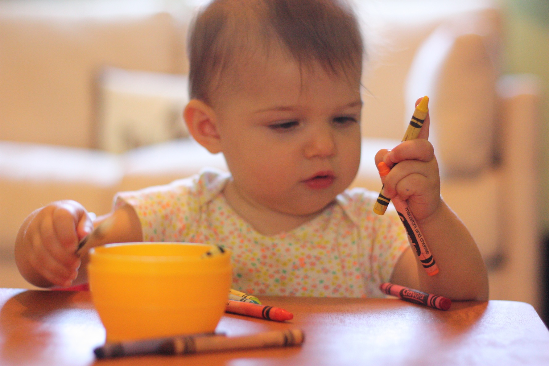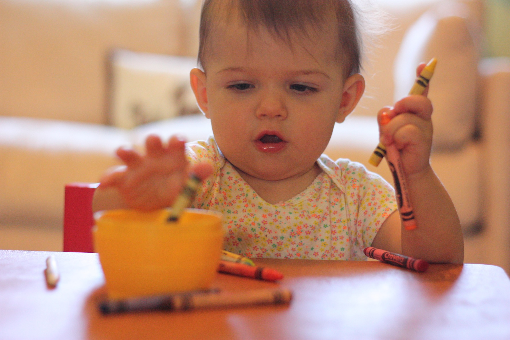 ….but Adele still thinks they are. I’m trying to show her the wonder of coloring with crayons, but she much prefers to put them in a cup and dump them out again… and chew on them of course. I already have coloring books waiting on the shelf for her big Picasso debut. It’s happening soon, I can feel it.
