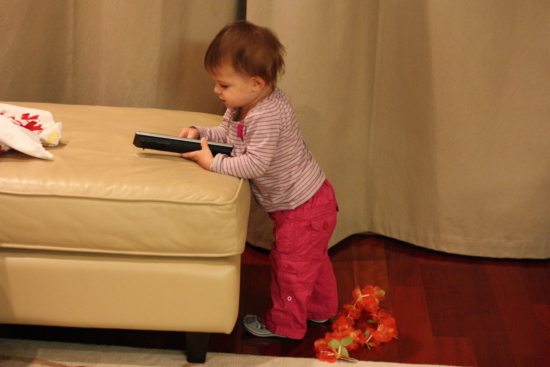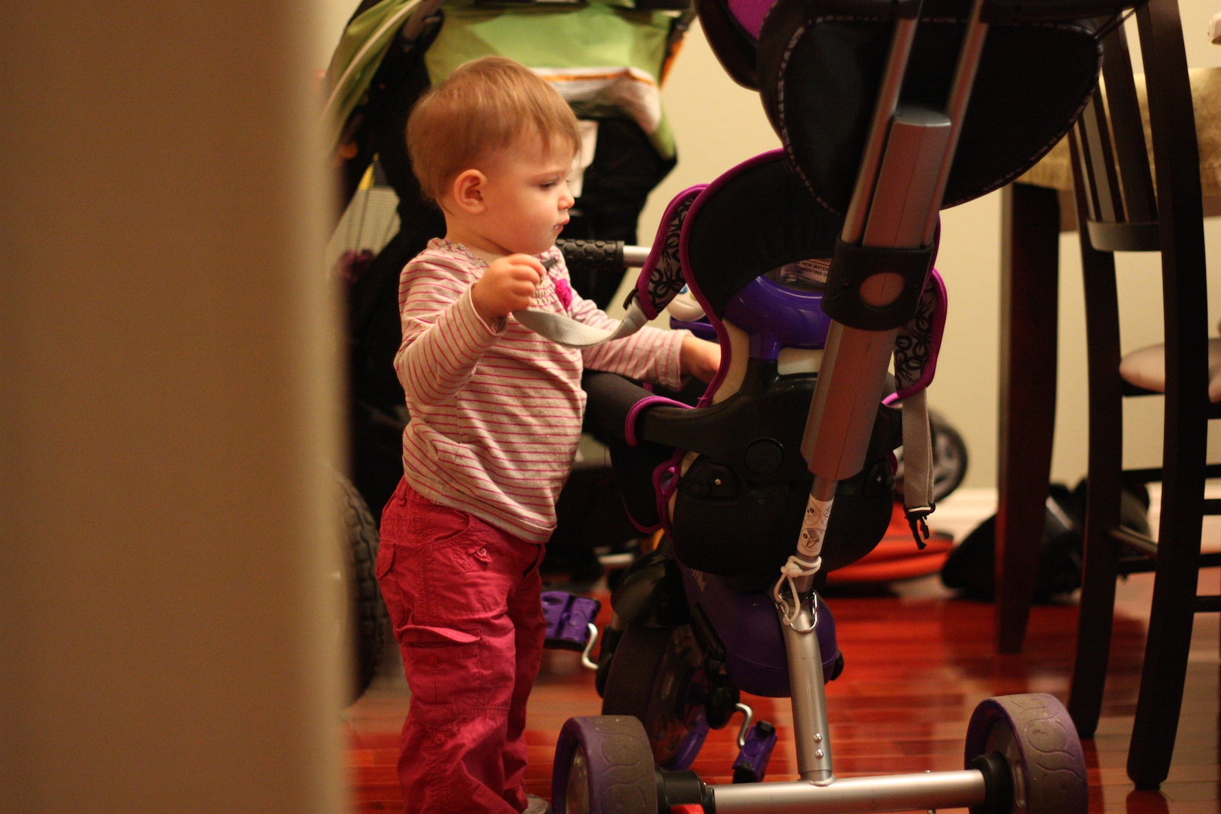She’s also really into straps, buckles and zippers lately. Her high chair and stroller have become just as interesting as her toys.
