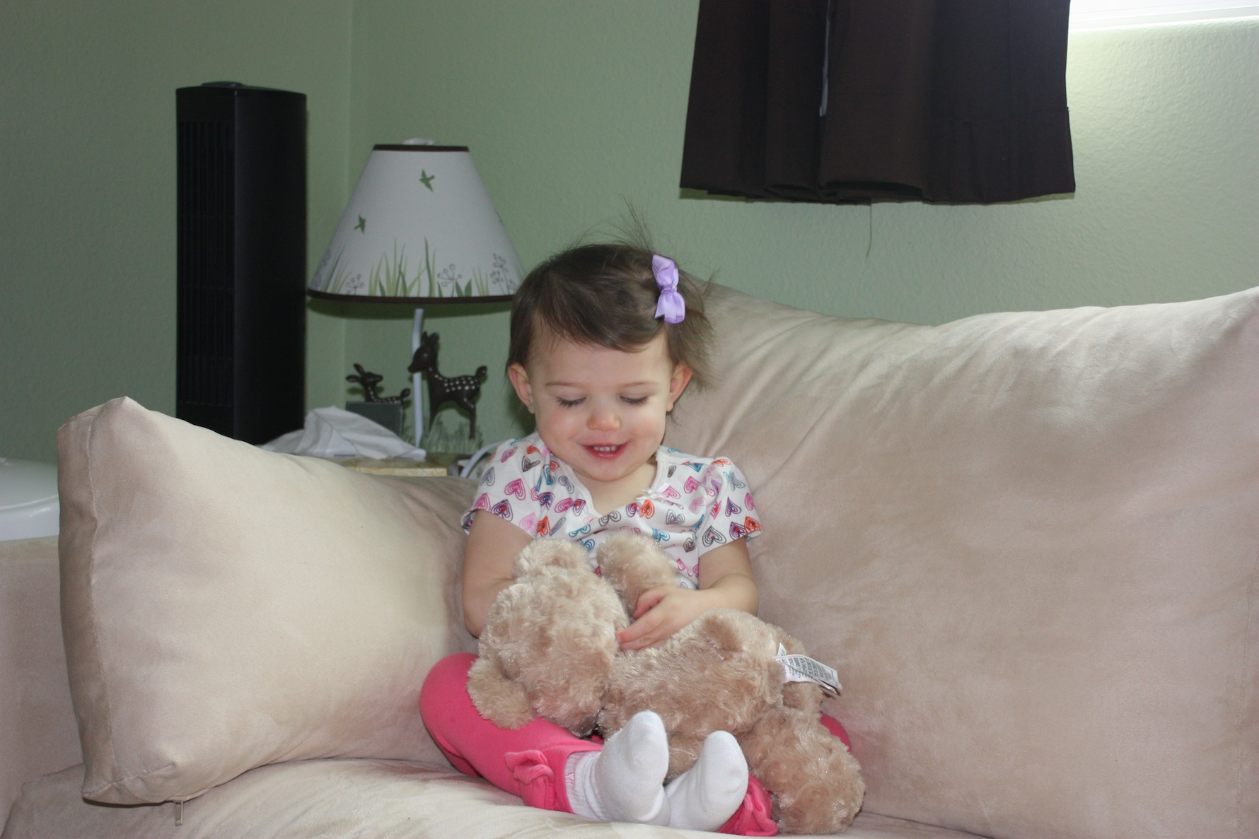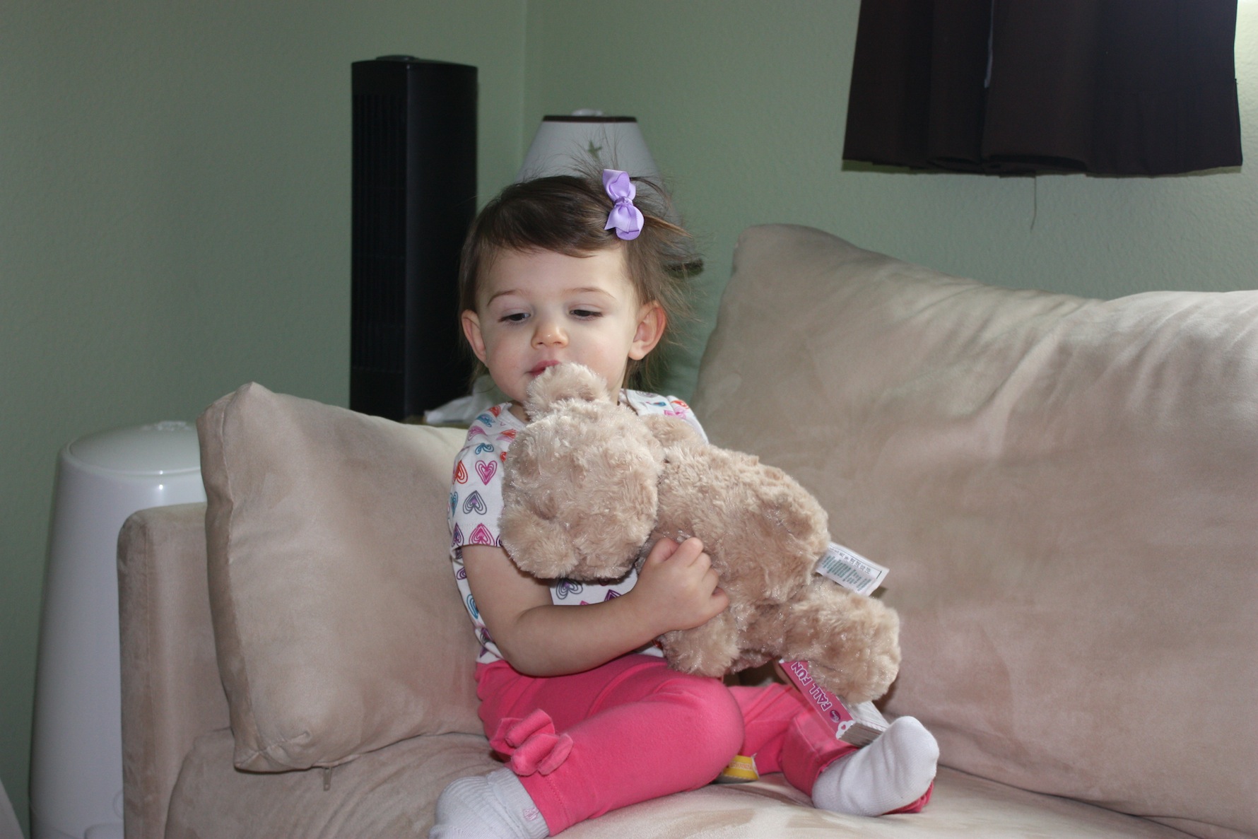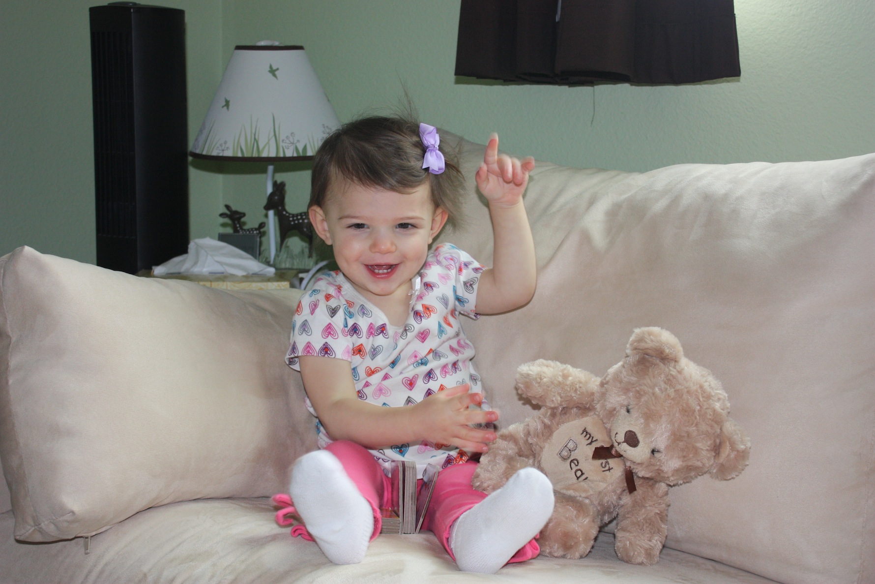 You guys…. she doesn’t throw food on the floor anymore! At all!!! Sometime this month I noticed I hadn’t had to clean the floor every night after dinner! So glad that phase is over! She also got her appetite back this month and went from eating only a few bites at meals to asking for seconds (and thirds!). Maybe we’ve got a growth spurt on the horizon. She’s still a little bit picky, but she’s eating more of a variety than in previous months too. I think we’ve turned a food corner! Her favorite foods this month are: Apples, Oranges, Blackberries, Blueberries, crackers, alphabet cookies, minestrone soup, cereal with milk, anything dipped in sour cream and fig bars.