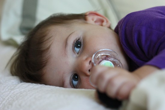 Then last week, we had a rough day, and I decided it couldn’t get any worse, and on a whim, without much thought, I put her to bed sans pacifier. She cried for five minutes and fell asleep. We let Daycare know that we nixed it at home, and they were on board as well that very same day. The next night, same thing, protested for a few minutes, and then conked out. I was feeling pre-tty proud of myself. Wasn’t so bad after all!
