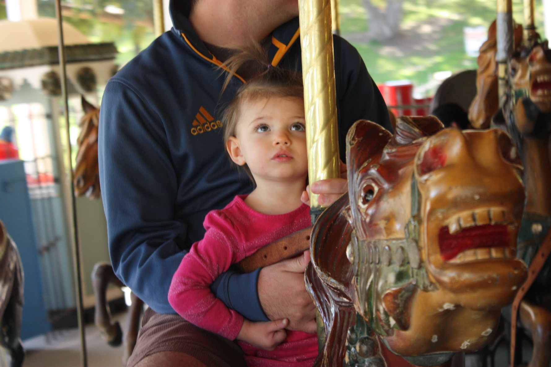 The Merry-Go-Round is 75 years old and still looks the same as it did way back then! It’s really cool to ride actually. But she was so scared, I felt so bad!