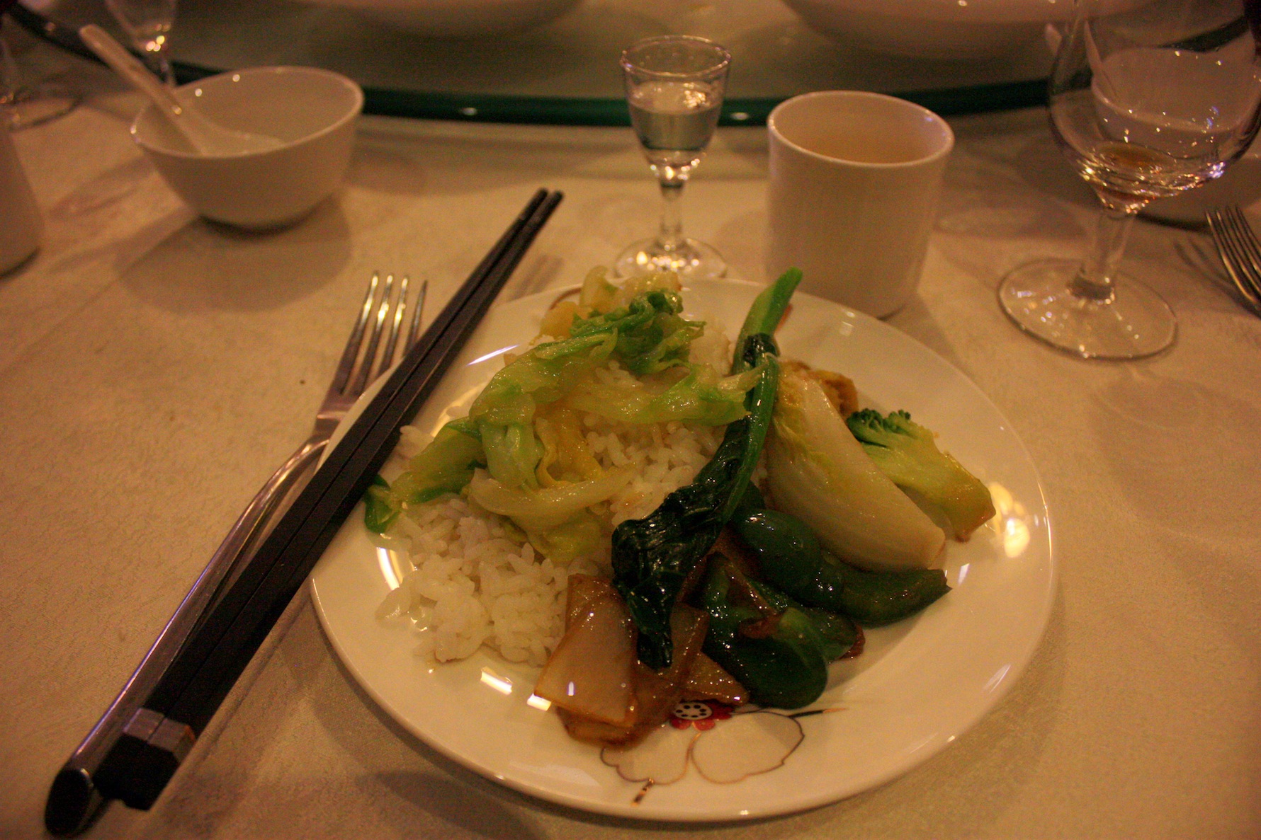 Apparently, in order to be called “Peking Duck”, the duck has to live, die and be eaten in Beijing. So when in Rome, right? I did have one small taste of the duck, but I mostly enjoyed the other dishes that are served alongside it. It was all delicious! Lots of vegetables, rice and thin pancakes.