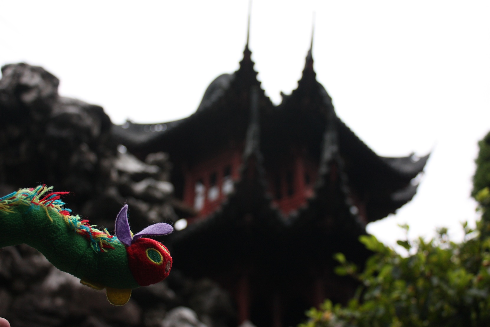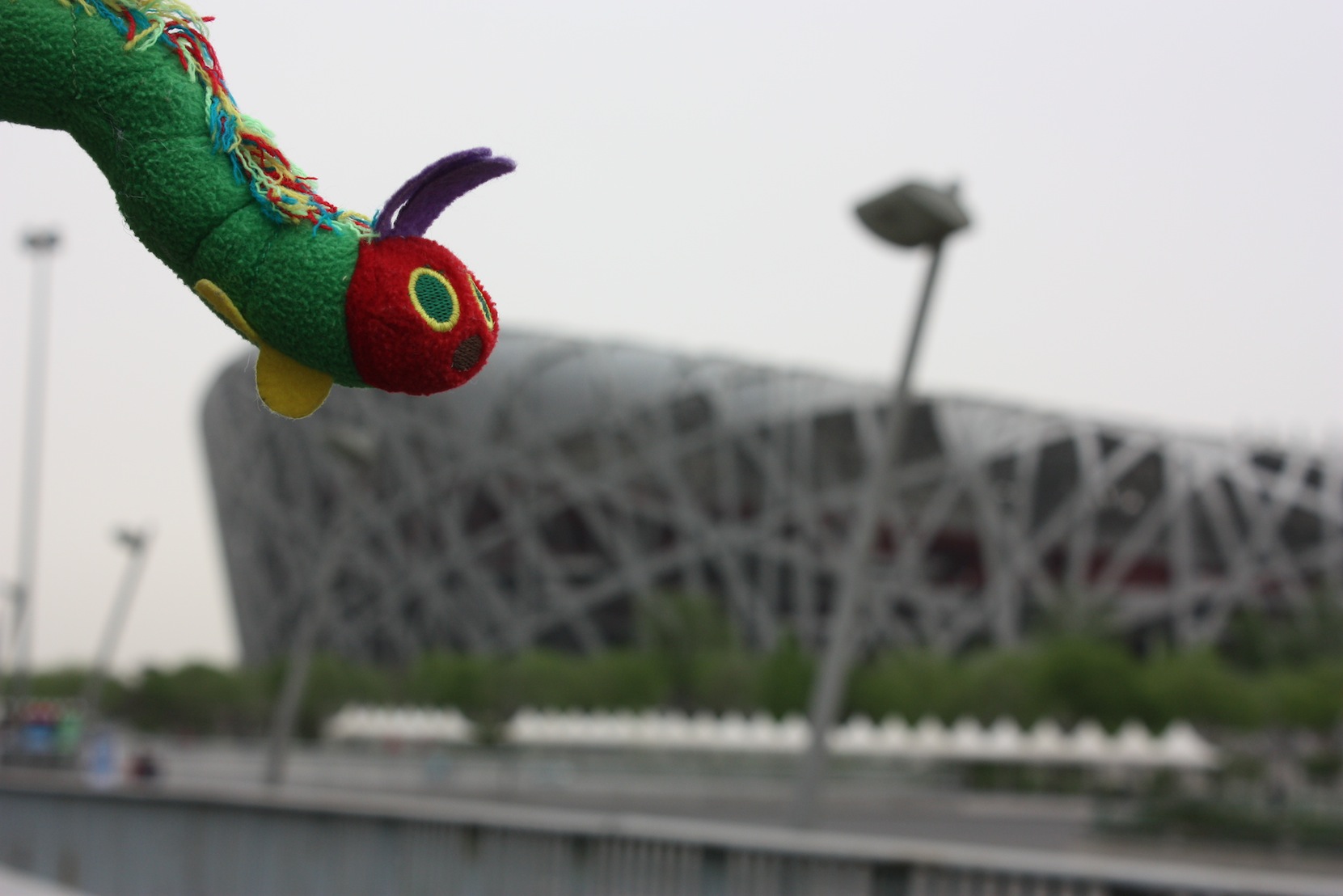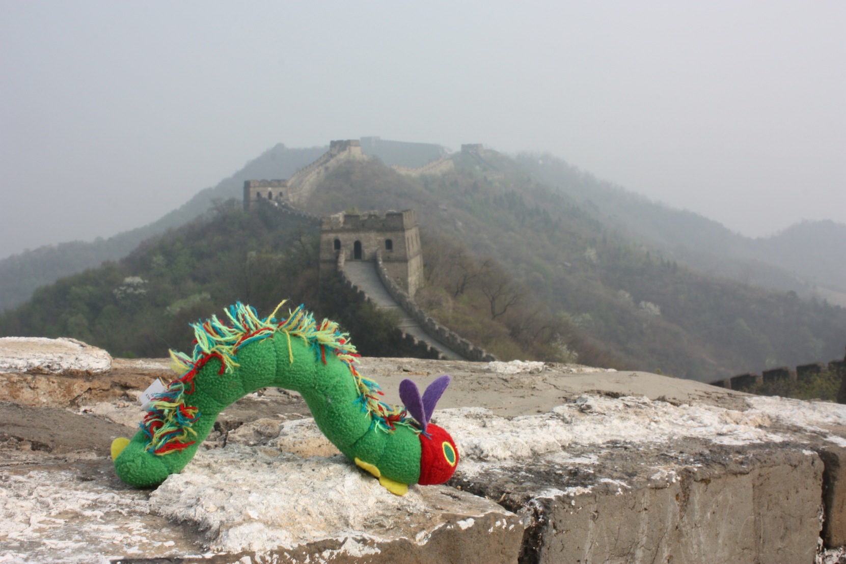 When we were packing up to leave for China, I said, “Don’t forget to pack your Caterpillar!” and Irving and I both looked at each other and decided we should pack it as a joke and take pictures with it for Adele.