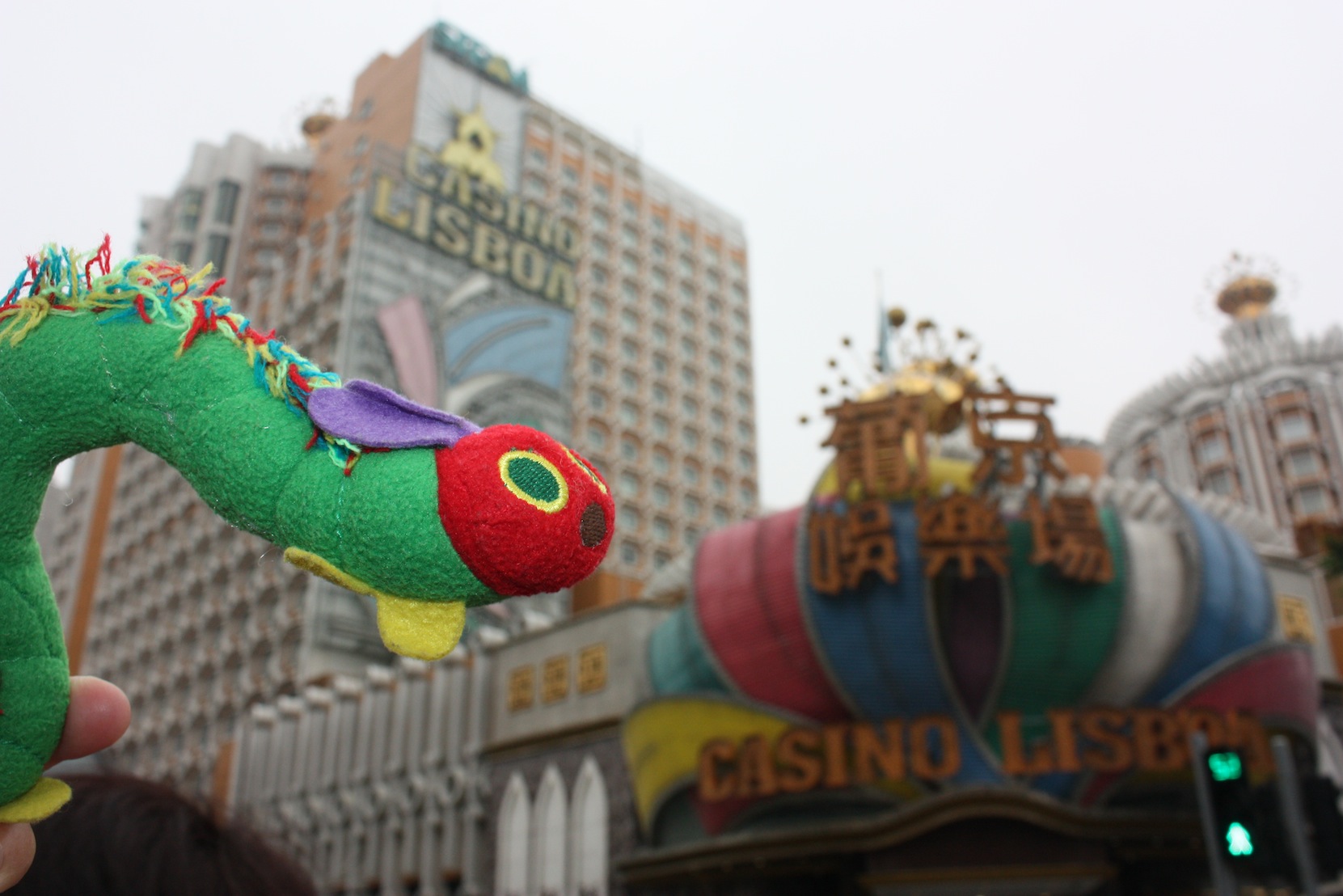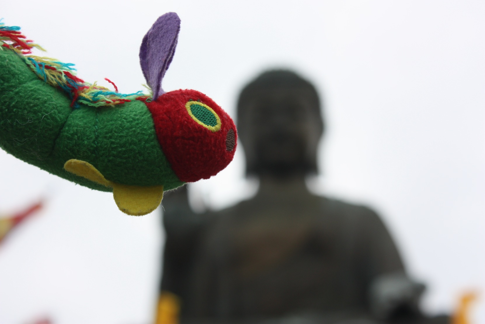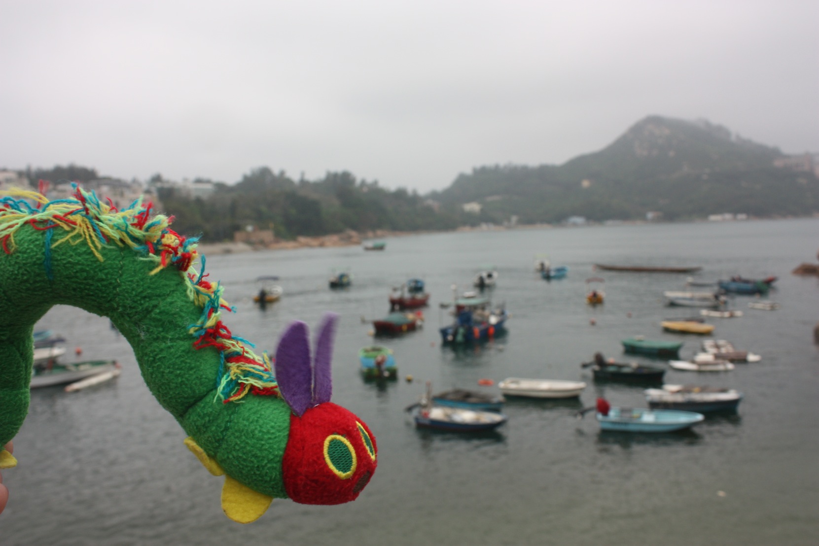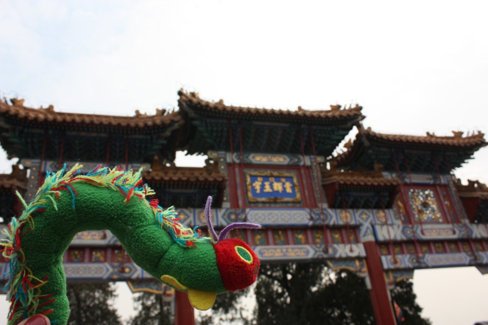 When we were packing up to leave for China, I said, “Don’t forget to pack your Caterpillar!” and Irving and I both looked at each other and decided we should pack it as a joke and take pictures with it for Adele.