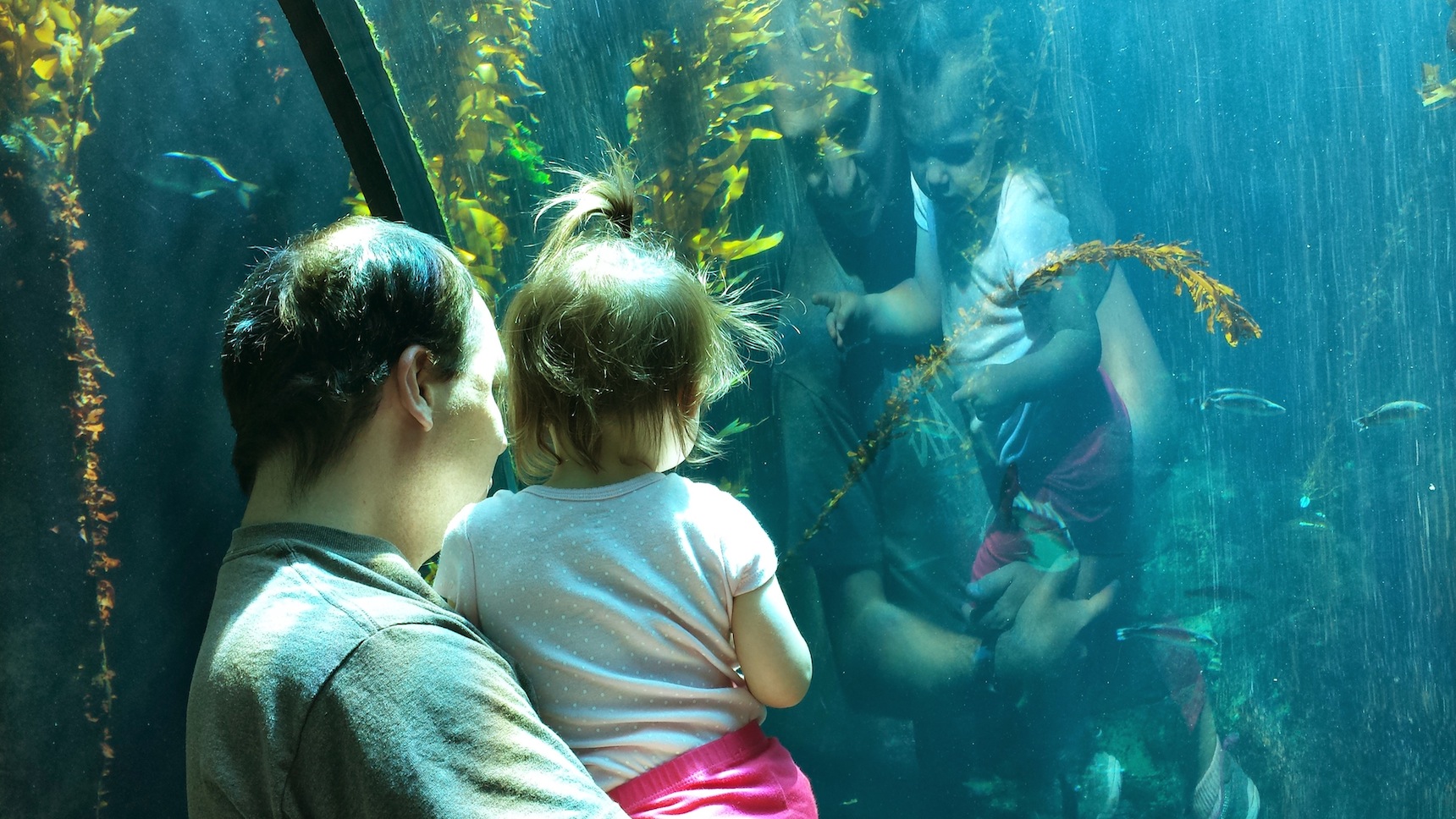 The kelp forest is awesome. Lots of fish and sharks! And even a tube you can walk through. Toddler approved!