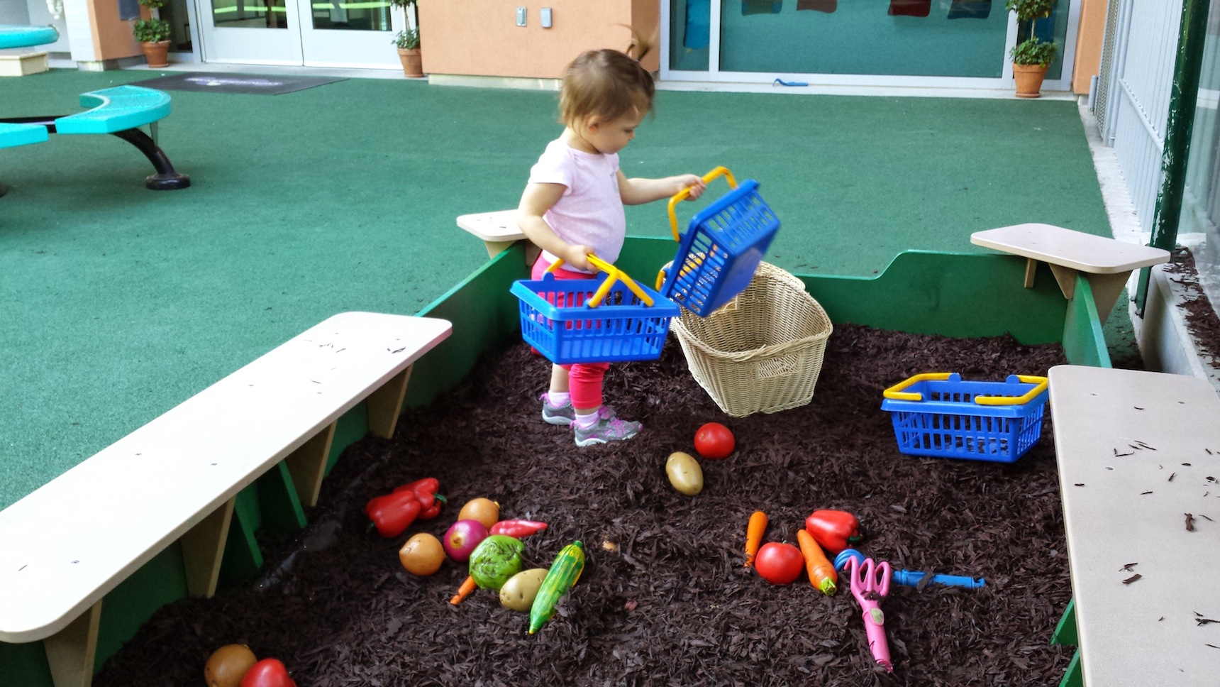But we did sneak in a little ‘toddler’ town action first. Check this out, it’s a ‘sand box’ but instead of sand or rocks, it was made out of shredded rubber tires! If I ever have a backyard, I’m getting a truck load of this stuff, it was awesome! And I loved their additions of vegetables to go hunting for! So healthy and cute.