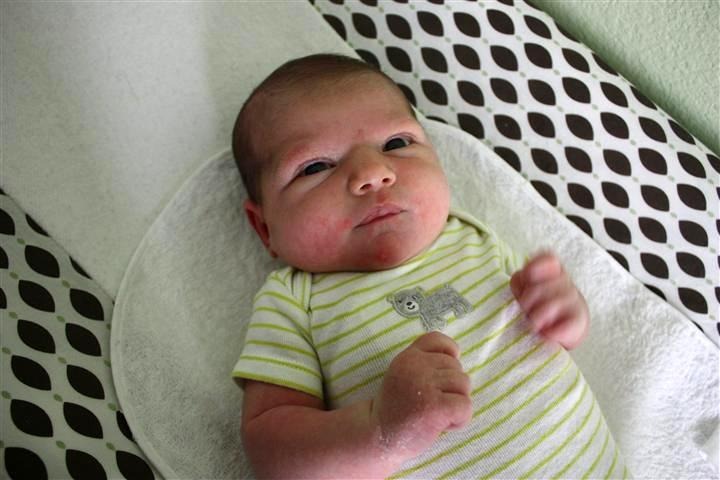 When I look at her really closely, I notice she’s starting to not look like a newborn anymore. Her hair is growing really fast! It’s especially cute and fuzzy after a bath. Little by little, she’s stretching out too. She’s not as scrunchy as she was in the first week or so. We keep her swaddled most of the time, but when we let her loose, all those skinny limbs stretch out nice and long.