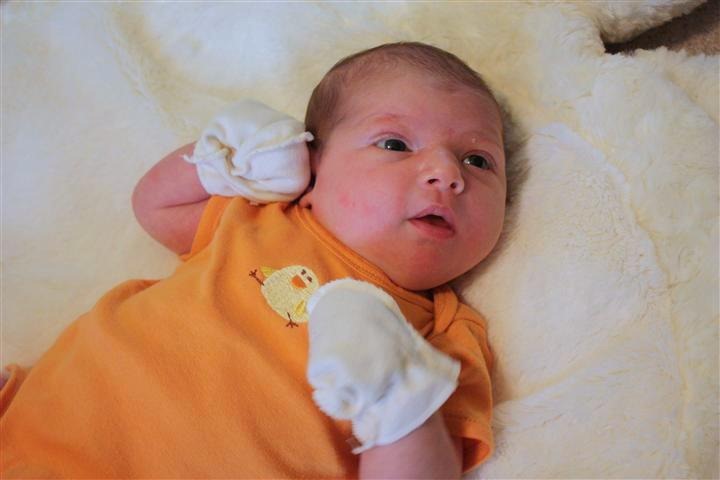 Her fingernails grow so fast! She always has her hands up near her face, so we’re sticking to the mittens for now. Poor girl keeps scratching her soft little face! ![]()