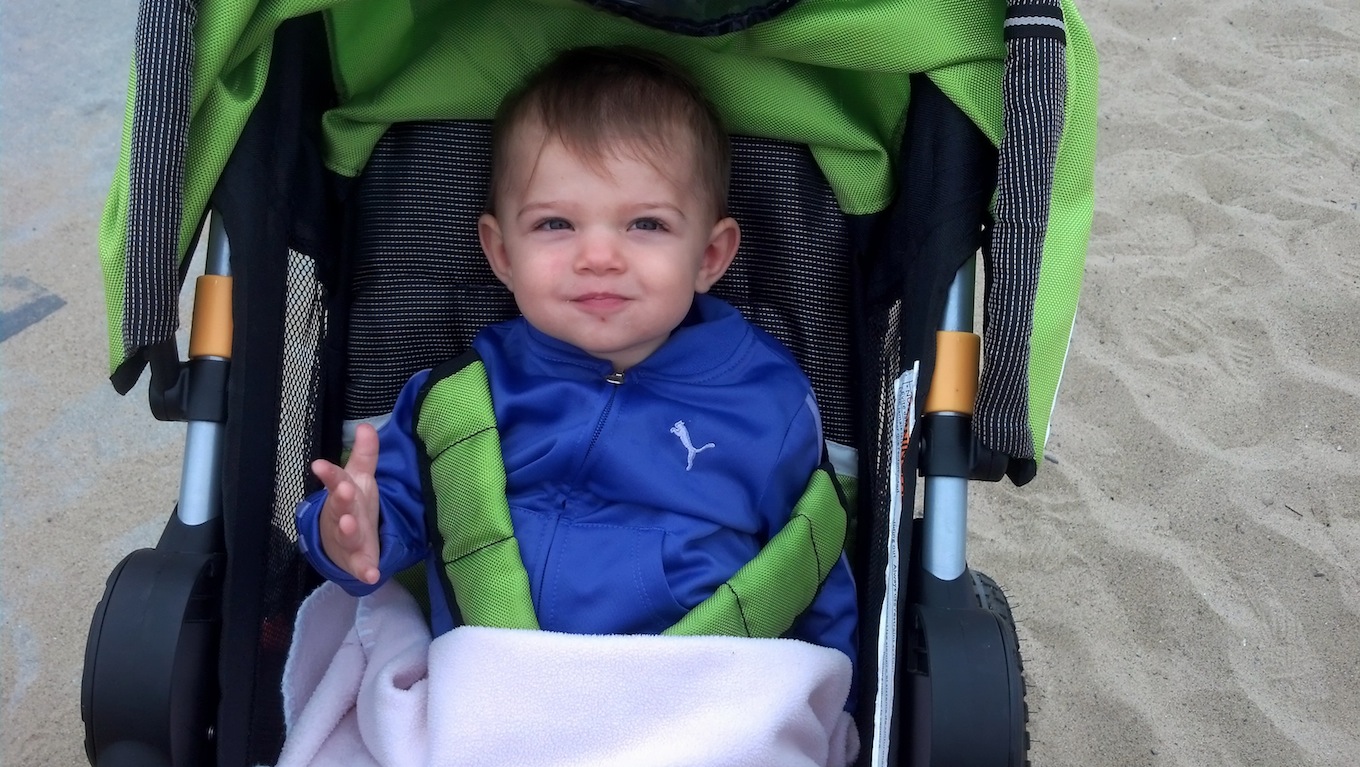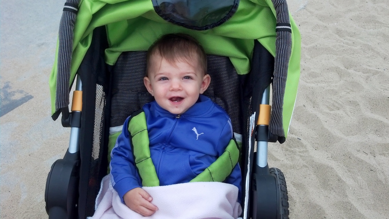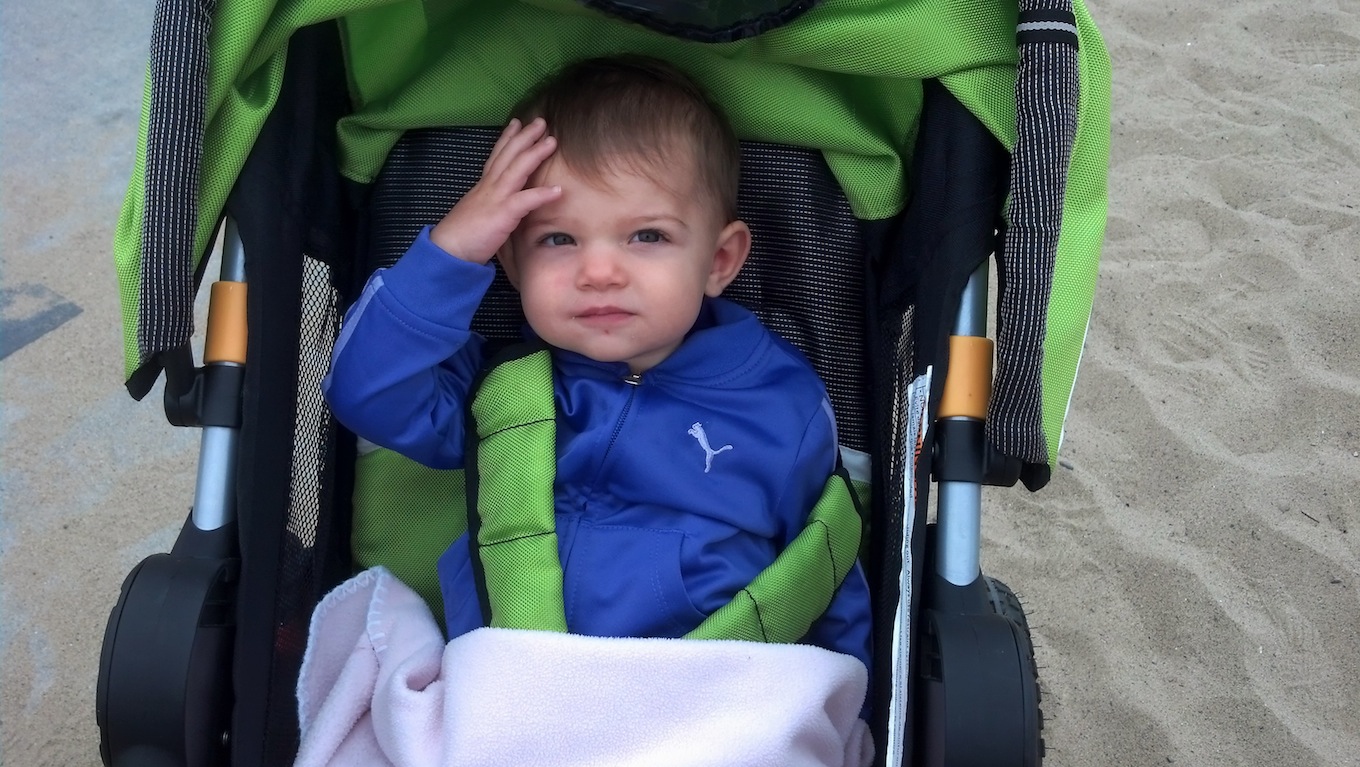 To get to the water, we had to hike down a hill, traverse along a cliff, climb over a ledge, cross the train tracks, and jump down a sand dune…. and Irving did all of that holding a carseat with a sleeping baby in it. #DadOfTheYear