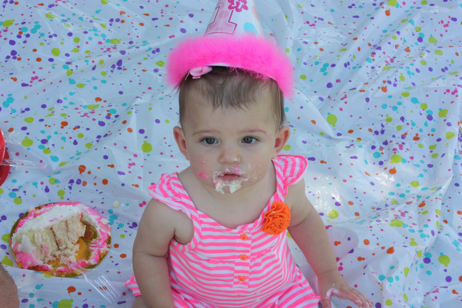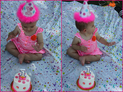 Soon it was CAKE TIME!!! Adele was getting tired and cranky, but as soon as she had one taste of frosting, she was 100% focused on the job at hand.