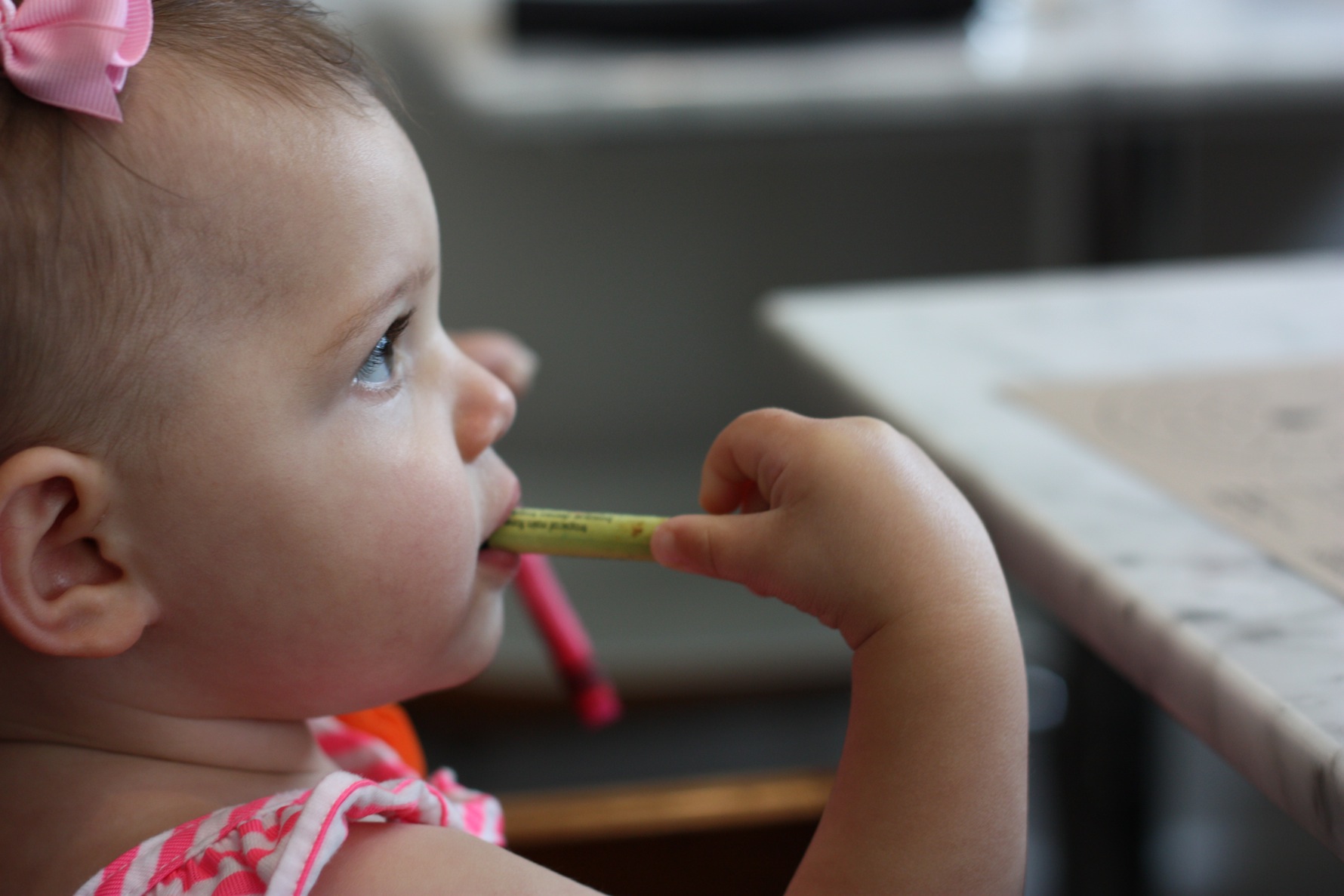 Adele prefers to eat crayons, instead of draw with them. Kids.