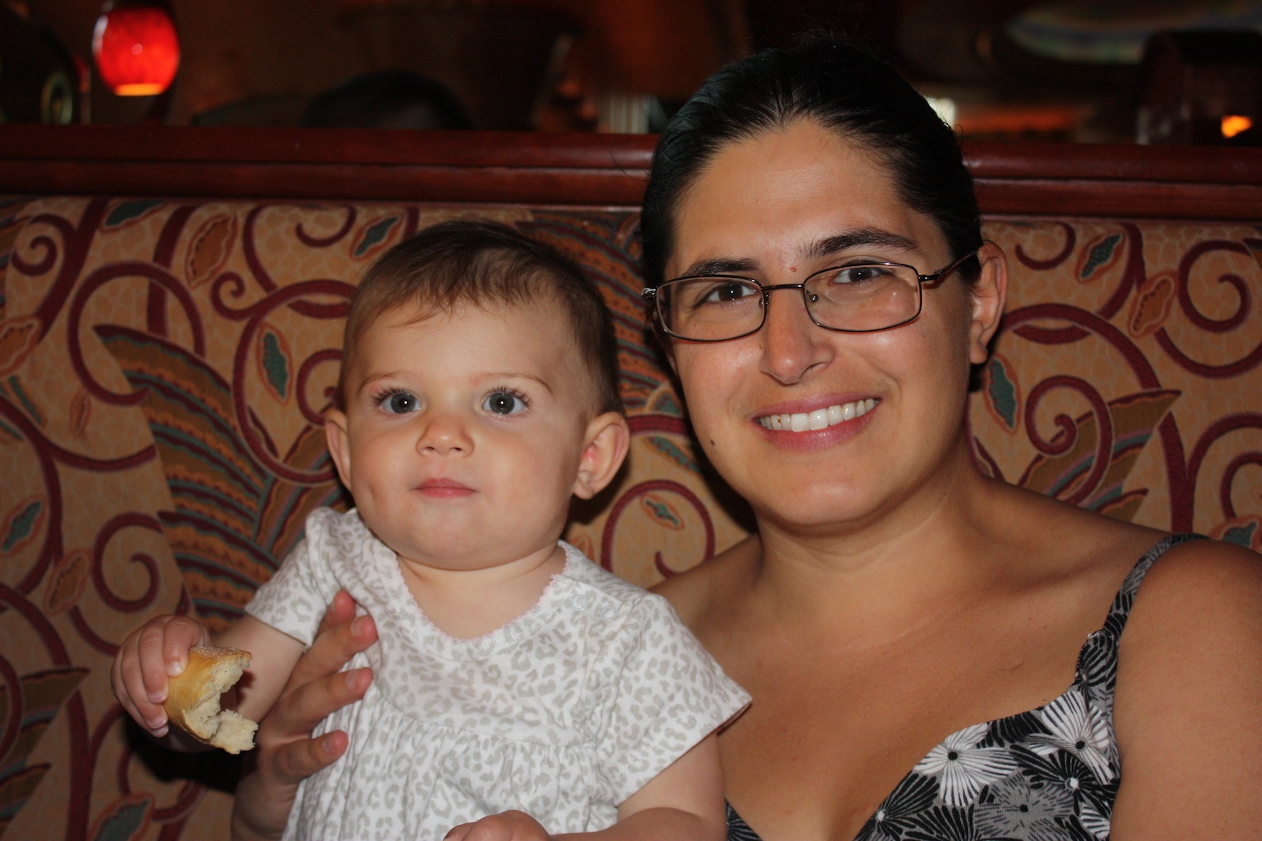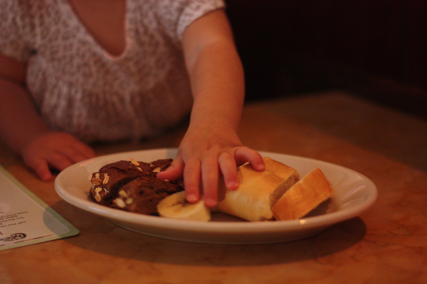 The waiter saw Adele’s birthday hat and brought her a special birthday treat! Her very own bread basket with baby-sized bread and a sliced banana! Isn’t that so cute!?