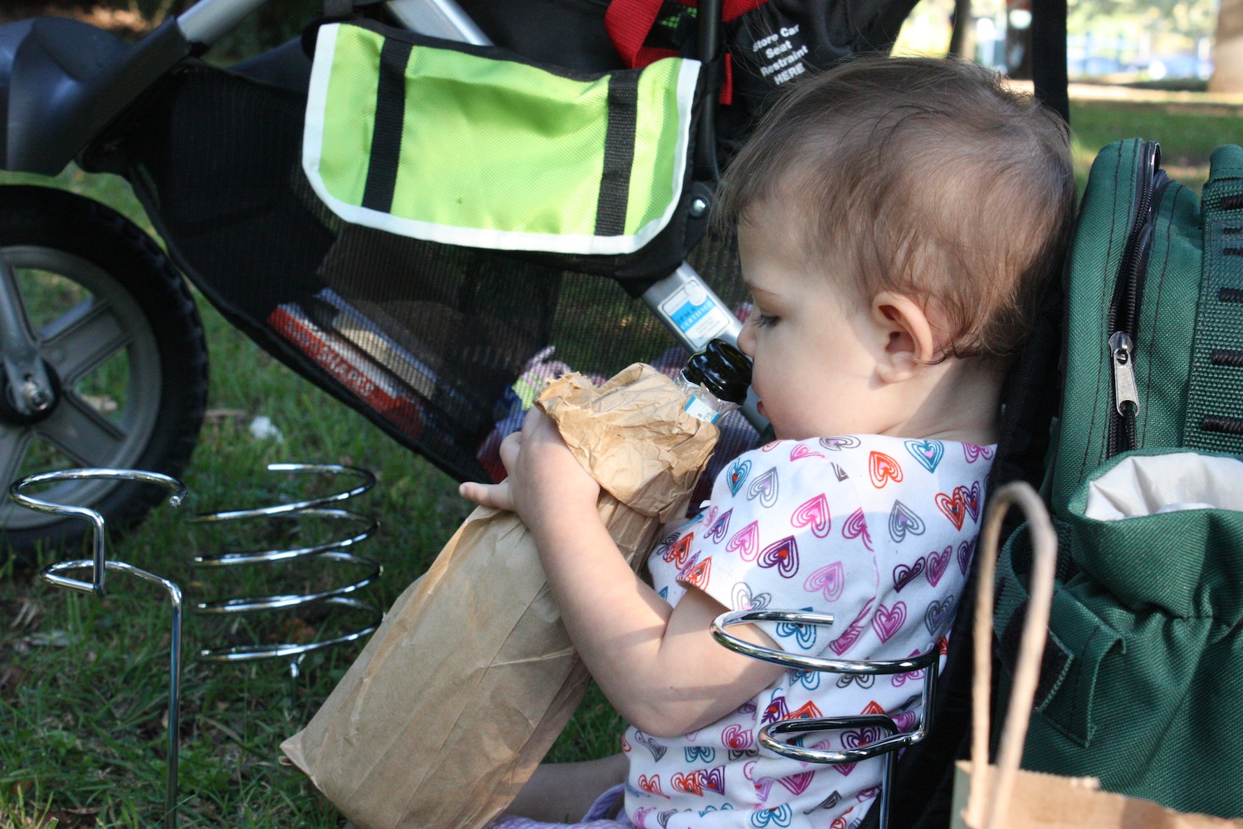 We tried to conceal our ‘open container of alcohol’ behind the stroller. Shhh! We’re such rebels!