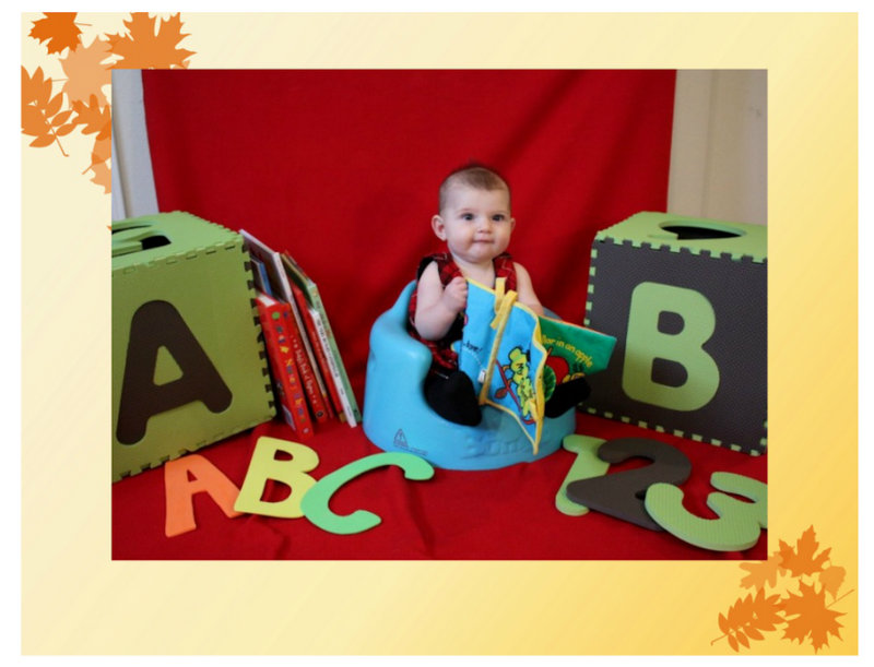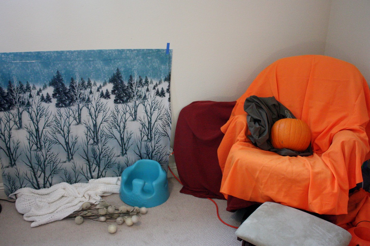 We set up backgrounds all over my house so we could do one for each month.