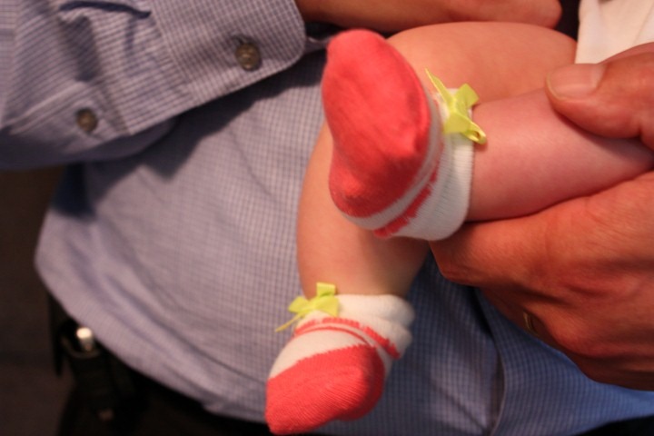 Uncles Tim and Junior brought her an ADORABLE dress and super cute socks too. She’s so spoiled! ![]()
